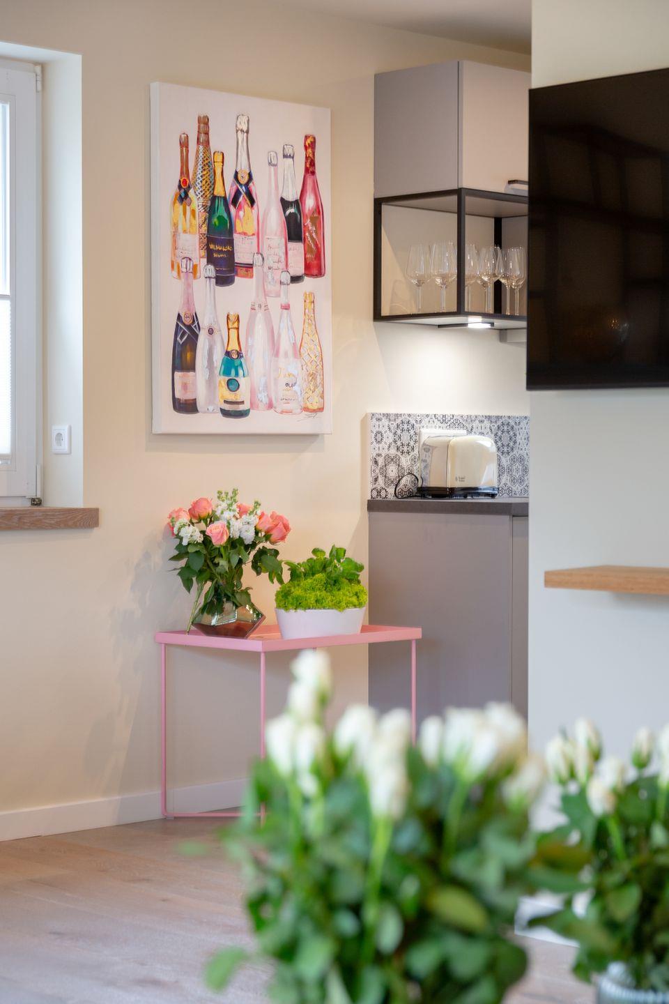 Ein zusätzliches Plus: Im Spitzboden befindet sich ein stilvoll eingerichtetes Homeoffice-Büro verbunden mit einem Fernsehzimmer. Hier können Gäste in einer inspirierenden Atmosphäre arbeiten oder entspannen.