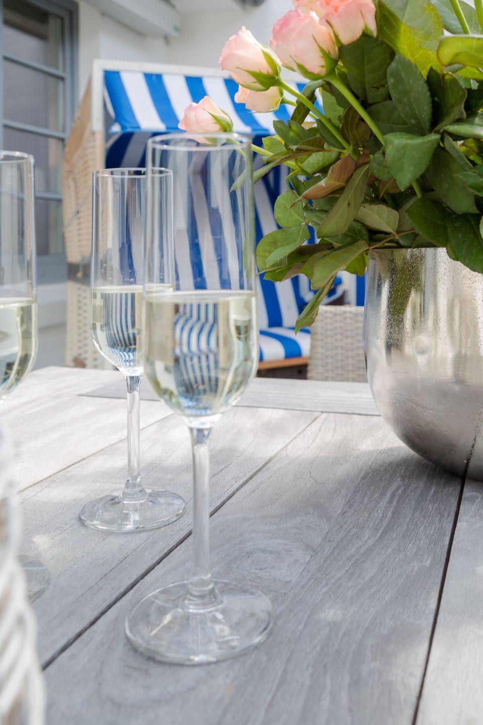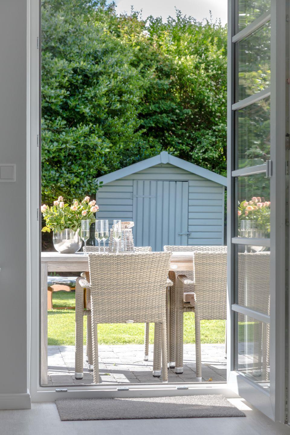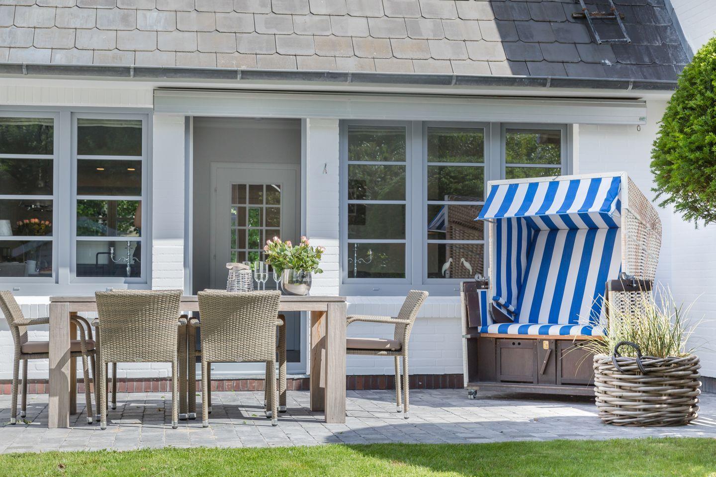 Ein echtes Highlight ist der sichtgeschützte, wunderschön eingewachsene Garten mit Südterrasse. Genießen Sie Ihre Privatsphäre beim Entspannen im eigenen Strandkorb oder bei gemütlichen Mahlzeiten im Freien auf hochwertigen Gartenmöbeln.