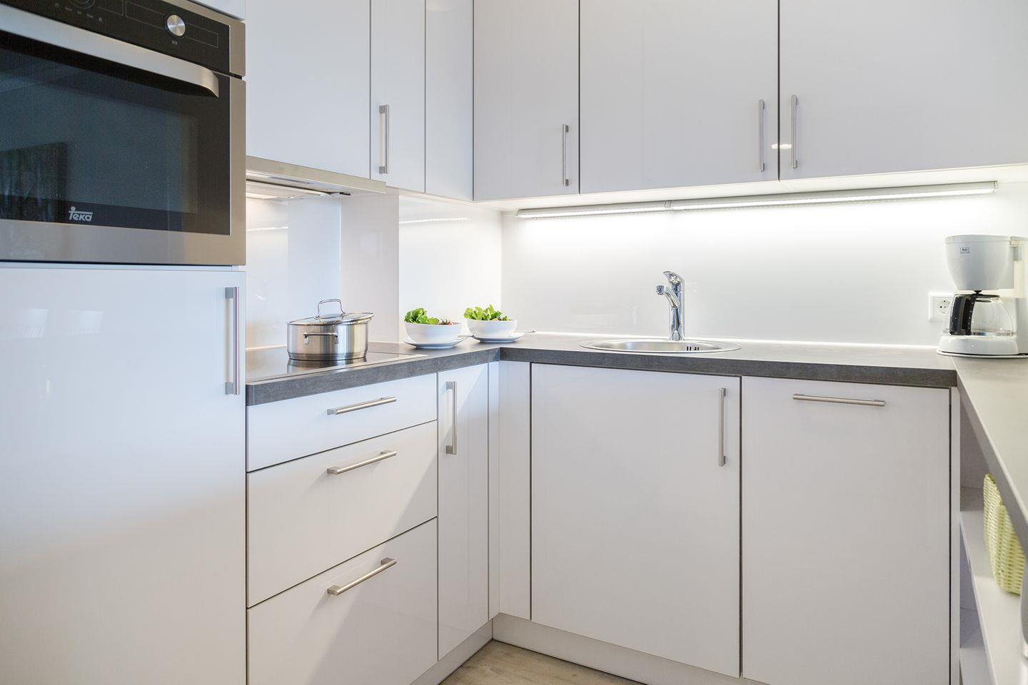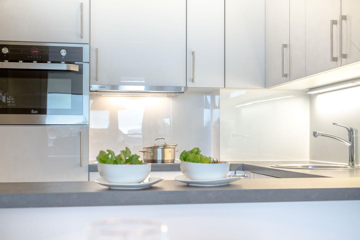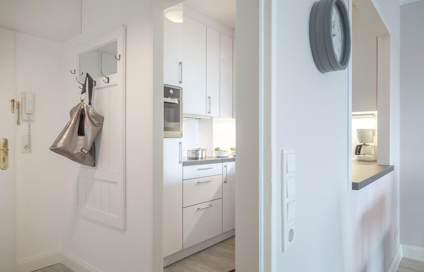 Sie befindet sich in der vierten Etage, welche aber über einen Aufzug mühelos zu erreichen ist. Das geschmackvoll eingerichtete Wohnzimmer umfasst eine offene Küche mit Essbereich, sowie eine gemütliche Sitzlandschaft mit großem Flachbildfernseher und dem Zugang zu dem größeren der beiden Balkone. Die modern ausgestattete Küche mit Durchreiche zum Essbereich bietet alles, was man zum Kochen benötigt. Das großzügige Schlafzimmer verfügt über ein hochwertiges Boxspringbett sowie Zugang zum kleineren Balkon und zum komfortablen Duschbad en Suite. Zusätzlich ist ein Gäste-WC vorhanden. Die beiden südlich ausgerichteten Balkone mit Blick über die Dächer von Westerland bieten ausreichend Platz zum Verweilen und Sonnenbaden. Entsprechendes Mobiliar ist vorhanden. Ein Stellplatz steht Ihnen in einer Parkgarage ganz in der Nähe zur Verfügung. Ihr Fahrzeug sollte allerdings eine Höhe von 1,80m nicht überschreiten.