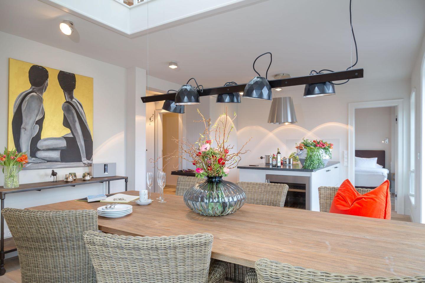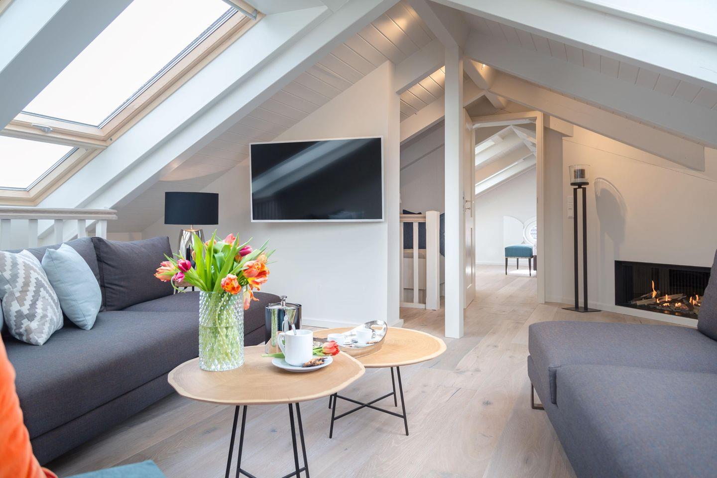 Luxuriöse Ferienwohnung Sterntaucher in Westerland mit Sauna, Dachterrasse und Garten, nur 1000 m vom Strand entfernt.