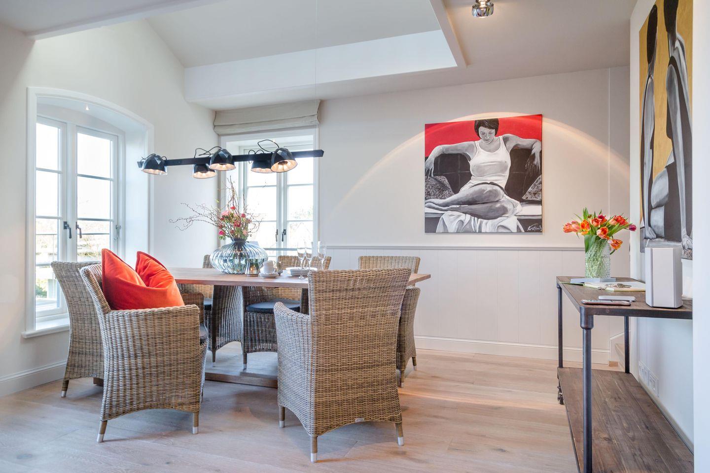 Willkommen in der Ferienwohnung "Sterntaucher" – Ihrem idealen Rückzugsort auf der wunderschönen Insel Sylt! Diese großzügige 127 m² große Unterkunft bietet Platz für bis zu fünf Personen und schafft damit den perfekten Rahmen für Familien, Gruppen von Freunden oder Paare, die einen entspannten und unvergesslichen Aufenthalt erleben möchten.