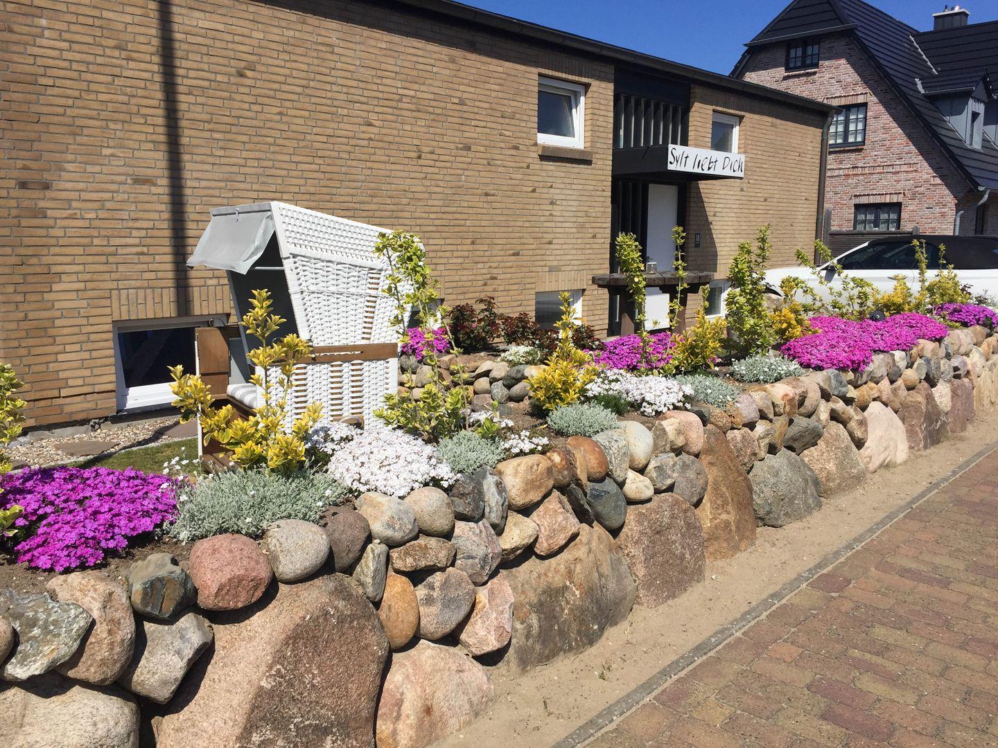Charmante 1-Zimmer-Ferienwohnung in Westerland, Sylt, nur 200 m vom Strand entfernt mit Meerblick und Strandkorb im Garten.