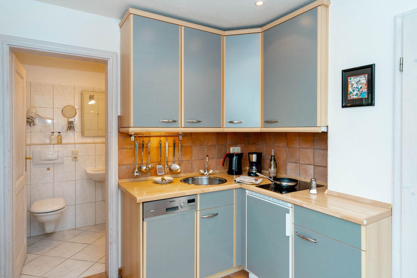 Moin, willkommen auf der Insel, heuern Sie doch mal bei unserem „Bootsmann“ an?! Die gleichnamige ebenerdige Westerländer 2-Zimmer-Ferienwohnung besticht mit viel Licht durch ihren attraktiven Wintergarten und durch ihre Lage in einer ruhigen Seitenstraße. Von hier aus sind es nur fünf Minuten zum Strandübergang „Friesische“, wie ihn die Einheimischen verknappt nennen. Auch die lebendige Innenstadt mit allen Shoppingmöglichkeiten und den großen Supermärkten ist von hier aus entspannt zu Fuß zu erreichen. Dieses Ferienappartement ist ungefähr 40 Quadratmeter groß und perfekt für zwei Personen, hat sogar eine Terrassen, eine friesisch blaue Wohnküche, sehr schönen Plavoizen-Boden und ein Schlafzimmer mit Doppelbett.