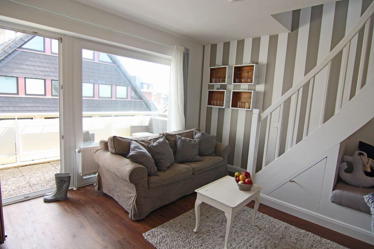 Gemütliche Ferienwohnung "Muck" in Westerland auf Sylt, nahe Strand und Fußgängerzone, mit Balkon und moderner Ausstattung.