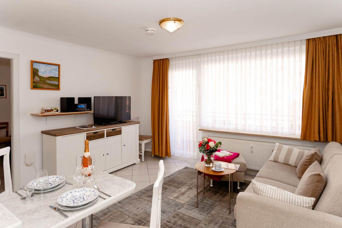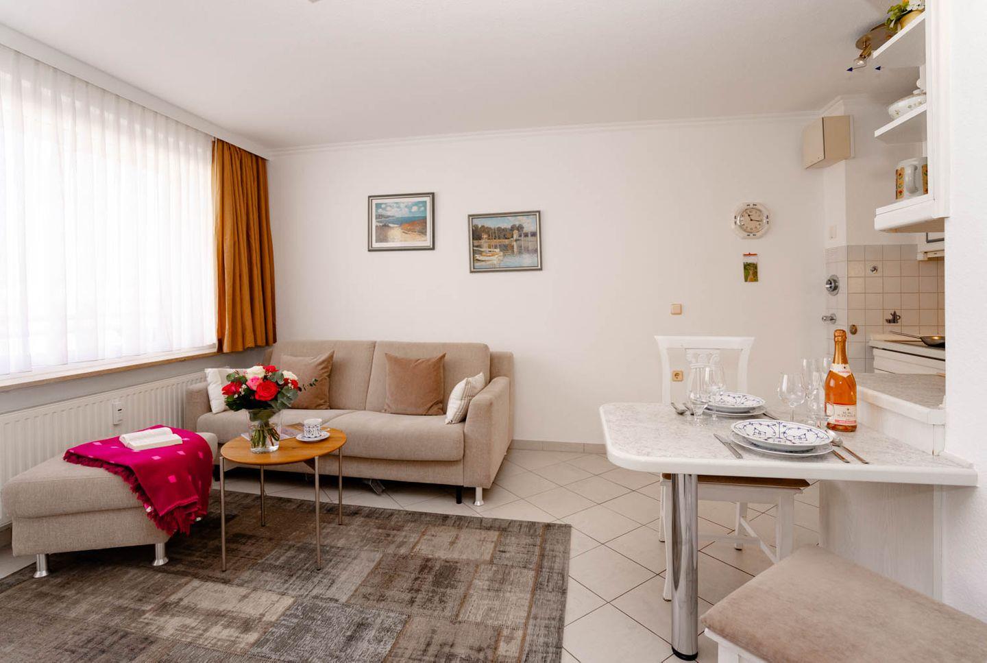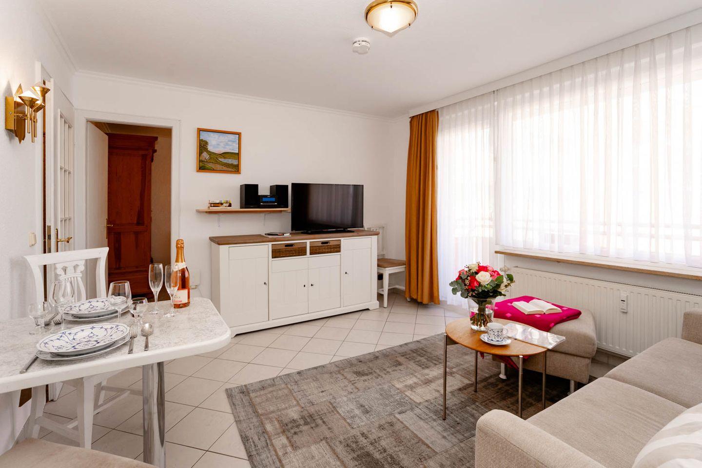 Moderne 2-Zimmer-Ferienwohnung "Queen Mary" in Westerland, nur 100 m von der Strandpromenade entfernt, ideal für erholsamen Nordseeurlaub.