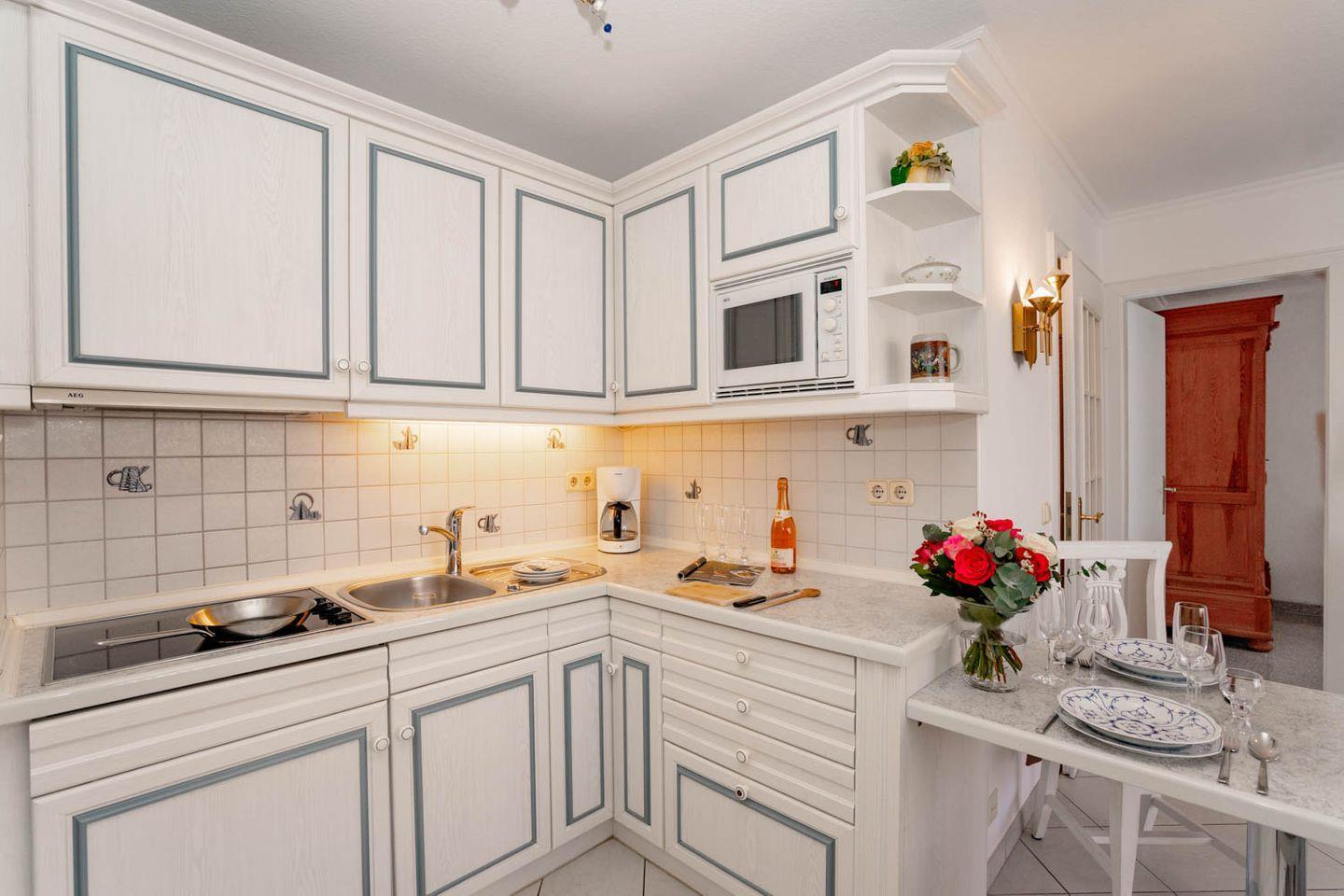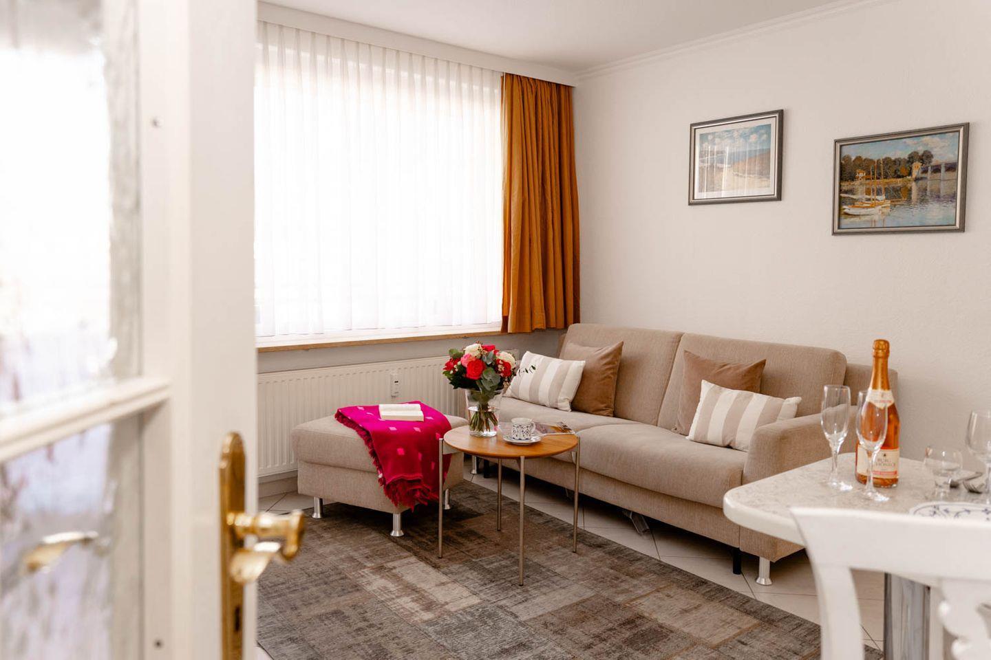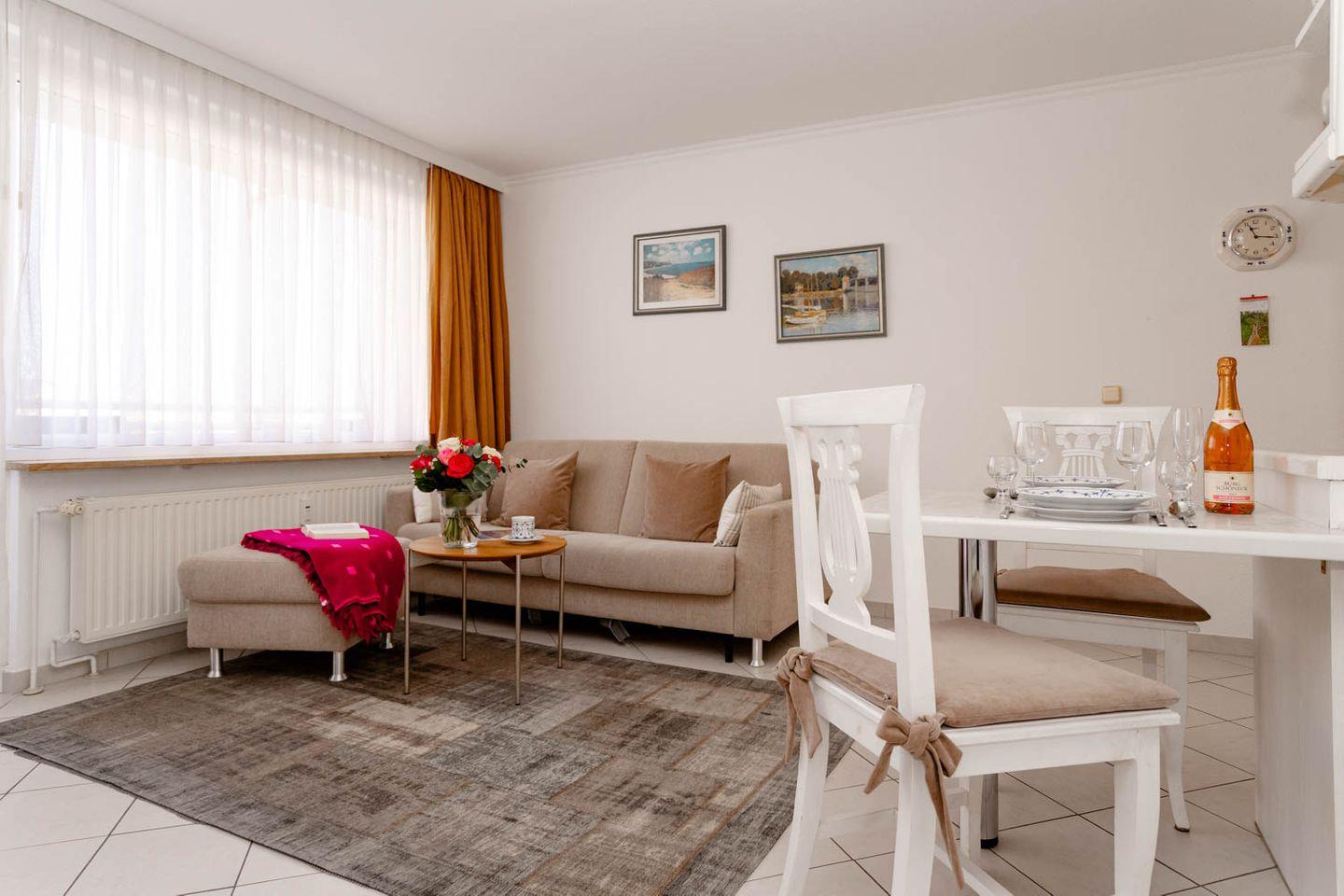 Moderne 2-Zimmer-Ferienwohnung "Queen Mary" in Westerland, nur 100 m von der Strandpromenade entfernt, ideal für erholsamen Nordseeurlaub.