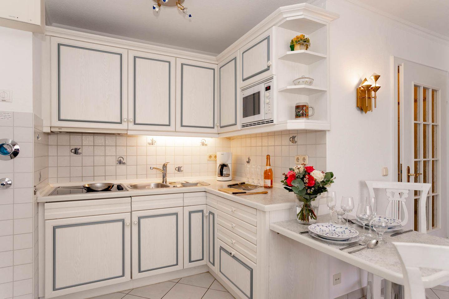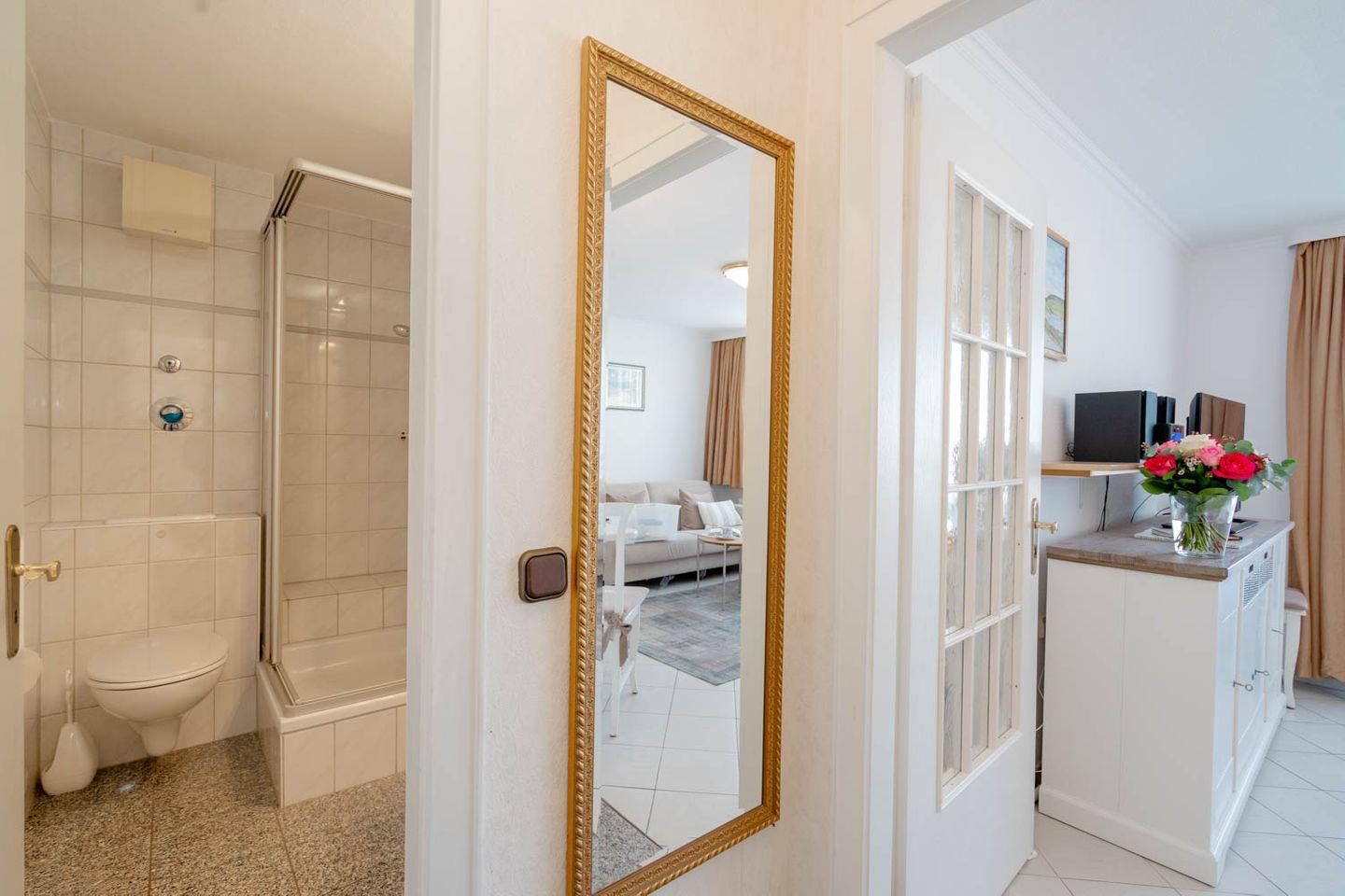 Ein königlicher Name und eine ebensolche Lage: Die 2-Zimmer-Ferienwohnung "Queen Mary" liegt nur 100 Meter von der Westerländer Strandpromenade entfernt im 3. Stock einer gepflegten Wohnanlage mit Fahrstuhl. Morgens vor dem Frühstück baden gehen, nachmittags durch die Fußgängerzone schlendern, abends auf der Promenade den Sundwoner genießen: Um die Lage dieser circa 38 Quadratmeter großen Wohnung beneiden Sie sogar Insulaner.