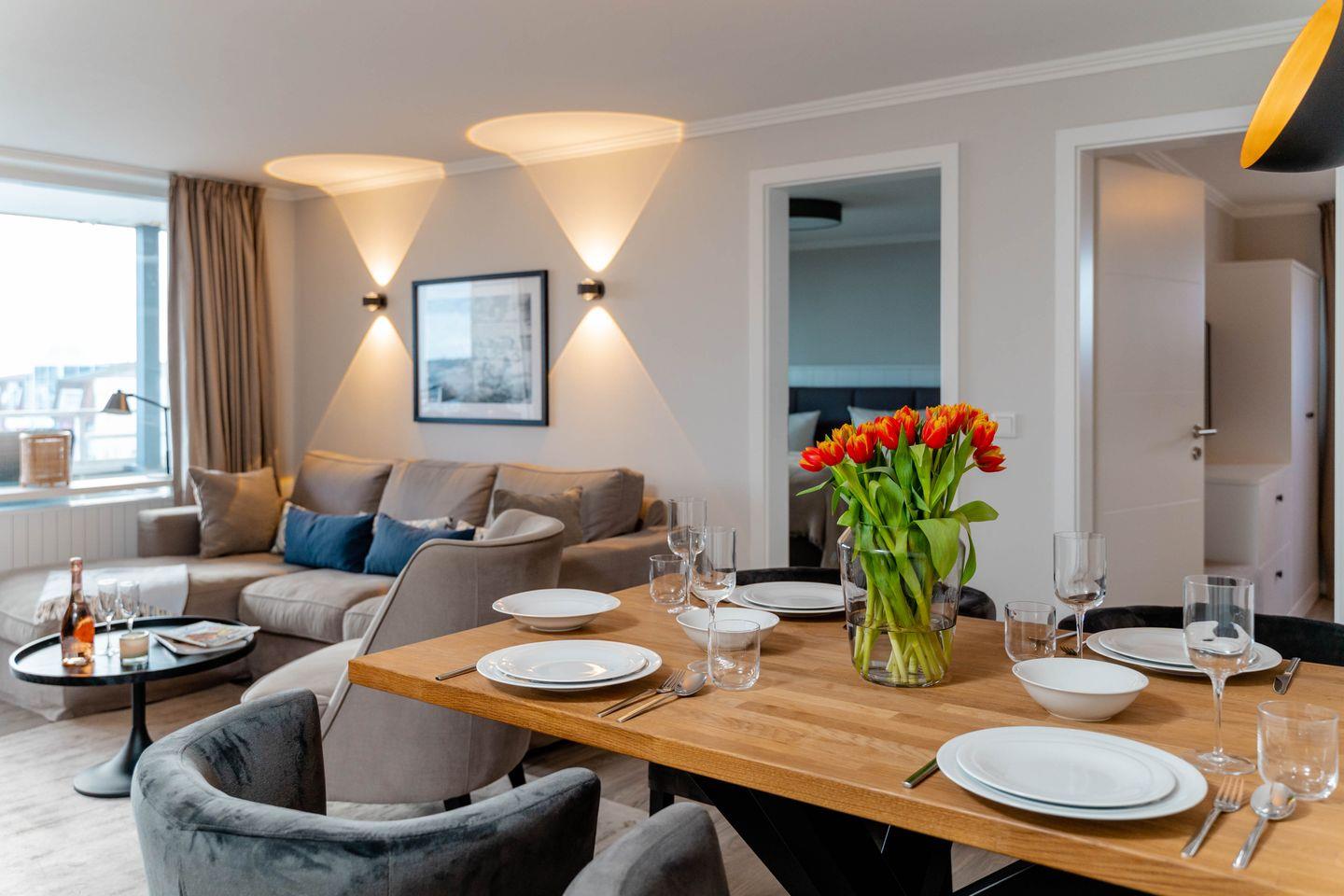 Moderne 3-Raum-Ferienwohnung in Westerland, zentral, mit Balkon, Aufzug und nah am Strand für einen entspannten Nordseeurlaub.