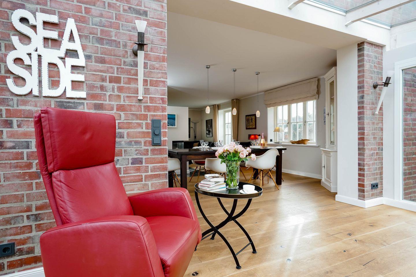 "Seaside 2" ist mit fünf Sternen klassifiziert, ein inseltypisches Sylter Juwel, einzigartig und sehr exklusiv, mit viel Stil und Liebe zum Detail eingerichtet. Ihr 3-Zimmer-Ferienappartement liegt ebenerdig und hat eine Wohnfläche von ungefähr 100 Qaudratmetern und lässt wirklich keinen der sprichwörtlichen Wünsche offen: Eine Sauna gehört dazu, ein Kamin, die Einrichtung ist echt stylish und doch gemütlich, der Garten inseltypisch und mit viel Geschmack angelegt. Die Lage? Perfekt. Keine fünf Minuten sinds zu Fuß von hier zum Strandübergang bei "Seenot".