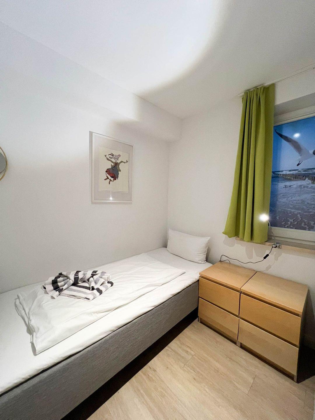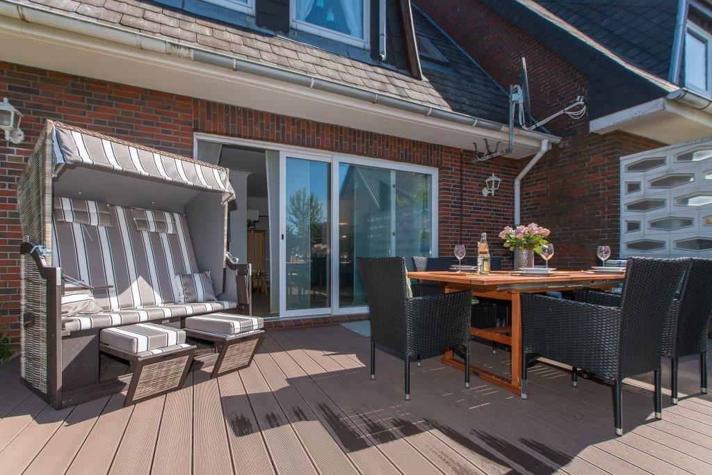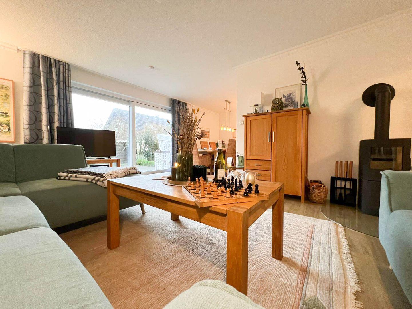 Das "Blaue Huis" in Westerland bietet ein helles 4-Zimmer-Appartement mit Sauna, Kamin und Süd-Terrasse nur 500 m vom Strand entfernt.