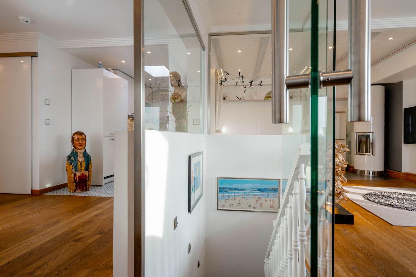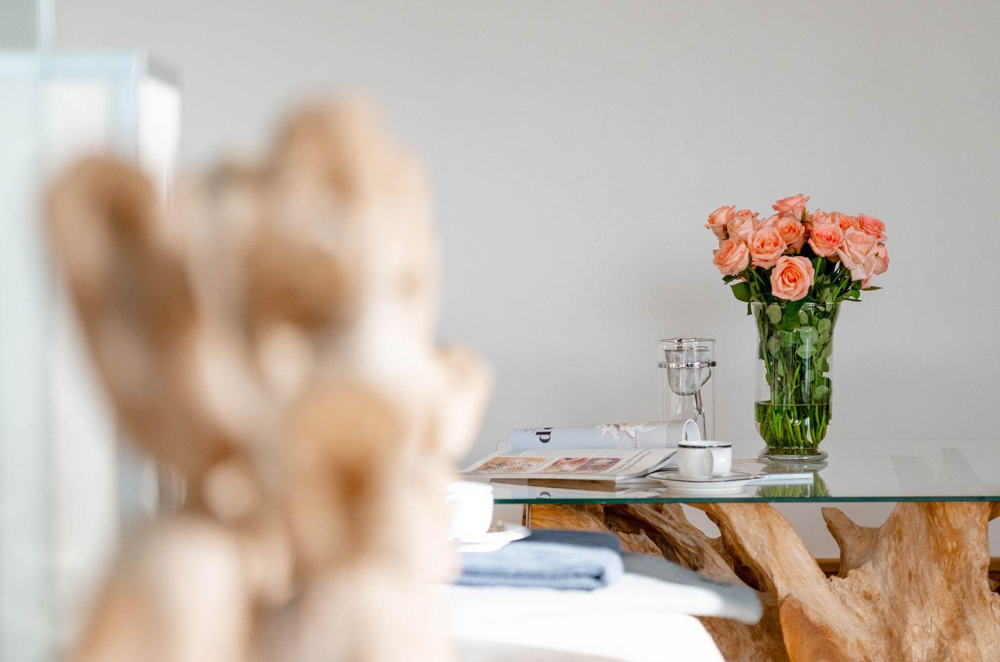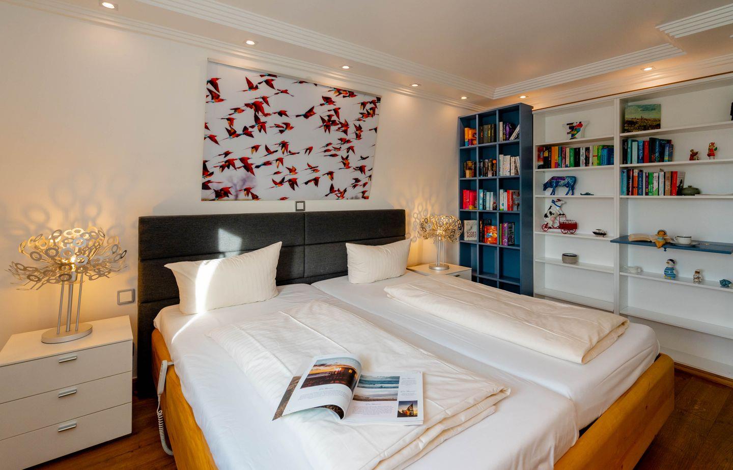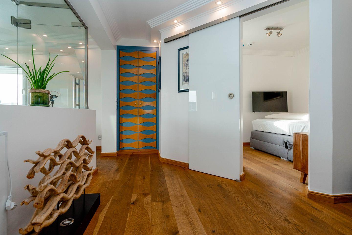 Moin, moin, dieser „Sommerwind“ ist etwas für Inselliebhaber, die das Außergewöhnliche suchen: ein 4-Zimmer-Ferienpenthouse für bis zu fünf Personen mit unglaublich vielen tollen Details. Da ist zunächst einmal die Lage: mitten in Westerland und doch etwas über den Dingen, mit kurzen Wegen zum Shopping, zu den Restaurants, Clubs und Supermärkten, zum Wochenmarkt, und wer ans Meer möchte, geht einfach nur einmal die Friedrichstraße „runter“ Richtung Westen. Drei Schlafzimmer, zwei Badezimmer, ein echter Kamin-Kachelofen und eine Dachterrasse nach Westen mit großartigem Blick über die Dächer der kleinen Inselhauptstadt sorgen für viel Flair in diesem Penthouse, das sich über zwei Ebenen zieht. Aber der Clou ist der wirklich besondere Einrichtungsstil dieses Objekts: Antiquitäten und Moderne, viel warmes Holz und strahlendes Weiß samt Glas verbinden sich mit raffinierten Einbauten und liebevoll ausgewählter Kunst zu einem attraktiven und sehr individuellen Mix. Müssen wir noch erwähnen,dass dieses Penthouse perfekt ausgestattet ist und sogar noch ein Außenparkplatz dazugehört.