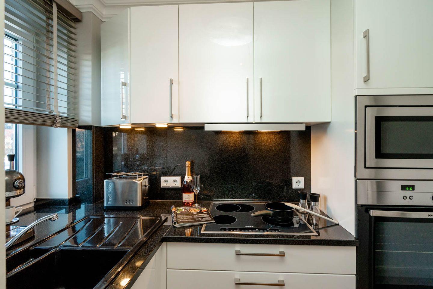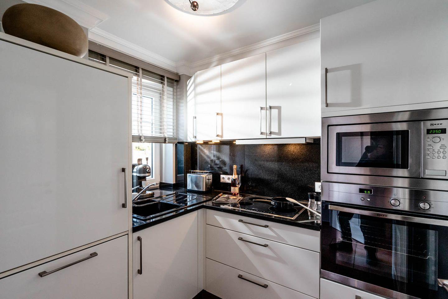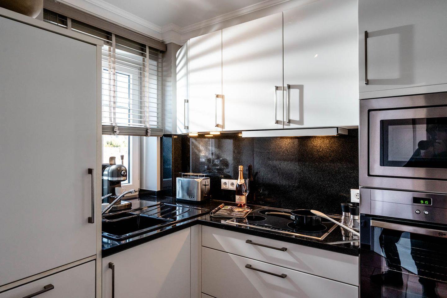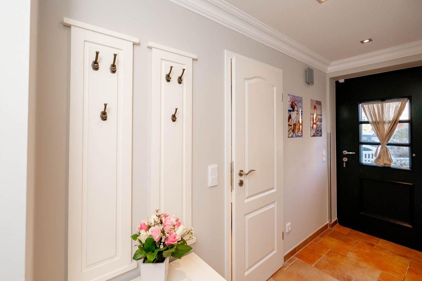 Moin und herzlich willkommen, sagt Ekke 1, diese 100 Quadratmeter große 4-Zimmer-Ferienwohnung, die sich über Erd-, Ober- und Dachgeschoss erstreckt, in einer kleinen Ferienwohnanlage im ruhigeren nördlichen Teil von Westerland liegt. Ein Gartenanteil und eine eigene Terrasse mit Möbeln und Strandkorb gehören dazu, ein hauseigener Parkplatz und ein Minibalkon im Obergeschoss, der tatsächlich Meerblick hat. Und auch die inneren Werte von „Ekke 1“ können sich sehen lassen mit zwei Bädern, eines davon inklusive Waschmaschine/Trockner, und drei Schlafzimmern mit zwei Doppel- und zwei Einzelbetten sowie einem Kinderbett. Das im Landhausstil eingerichtete Wohnzimmer hat sogar einen der typischen nordischen Kaminöfen und eine Fußbodenheizung, die Einrichtung ist sommerlich licht und freundlich. Dass die edle Küche mit Mikrowelle, Cerankochfeld, Cappuccino-Maschine und Backofen voll ausgestattet ist, passt zum perfekten Stil des Hauses. Die Lage der Wohnung ist ruhig und trotzdem strandnah, zu Fuß braucht man von hier aus nur gute fünf Minuten bis an den Strand, bis zur Innenstadt sind‘s höchstens zehn, ein Bäcker findet sich ganz in der Nähe.
