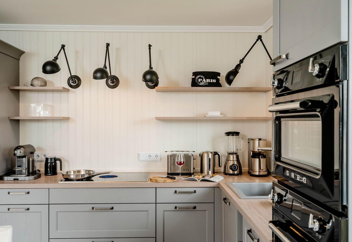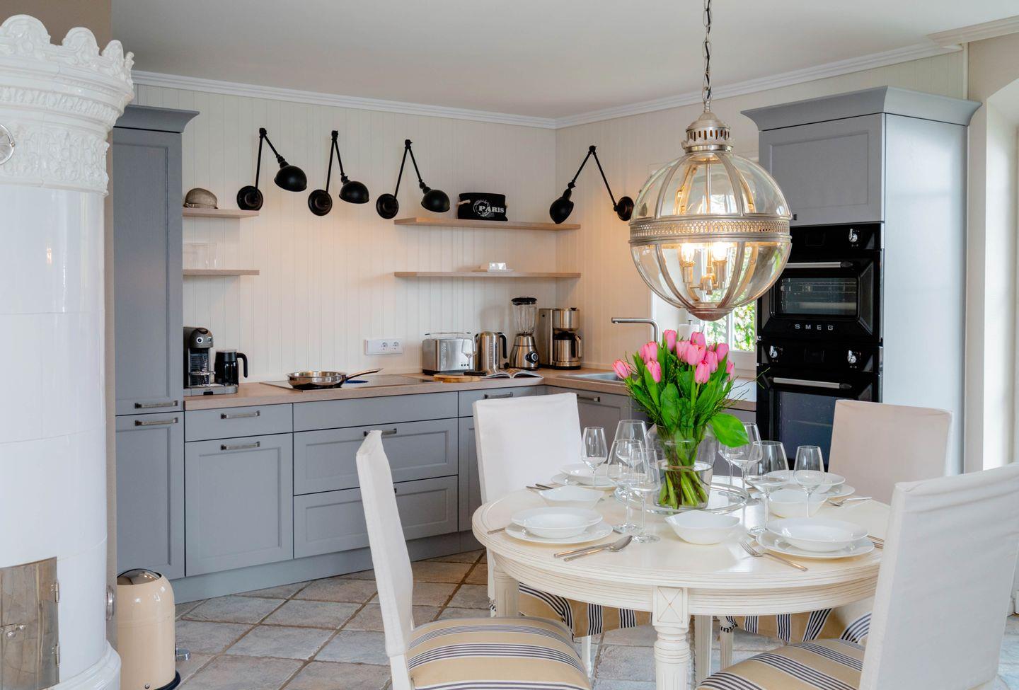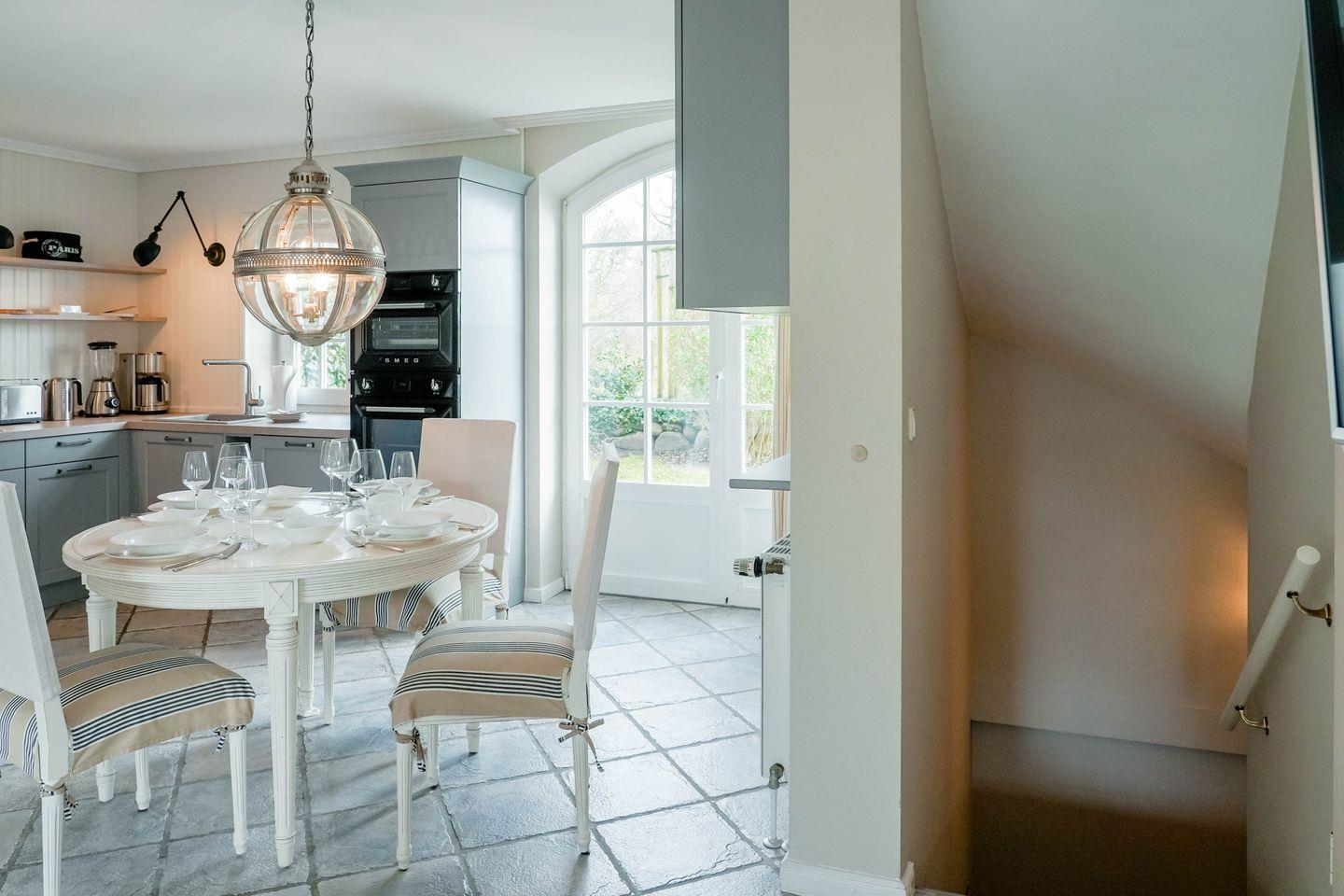 Moin, moin, willkommen in „Ekke 2“ wie wir diese Ferienwohnung kurz und knapp nennen. Sie verdankt ihren Namen dem Inselkobold „Ekke Nekkepenn“, einer Art nordfriesischem Rumpelstilzchen, das in Sylter Sagen herumpoltert. „Ekke 2“, gelegen in einem sylttypischen Doppelhaus, passt also sagenhaft perfekt mit ganzen fünf Räumen für bis zu vier Erwachsene. Star des großzügigen Wohn-Essbereichs mit offener Landhausküche ganz in Weiß ist sicherlich der wunderschöne und über 100 Jahre alte „Mylin“-Kachelofen. Die luxuriöse Ferienwohnung erstreckt sich über ein Erd- und ein Warftgeschoss, was für erholsamen und ungestörten Schlaf sorgt, nicht zuletzt auch wegen der hochwertigen Boxspringdoppelbetten in den zwei Schlafzimmern mit attraktiven Eichendielen und durchdachten Einbauten.
