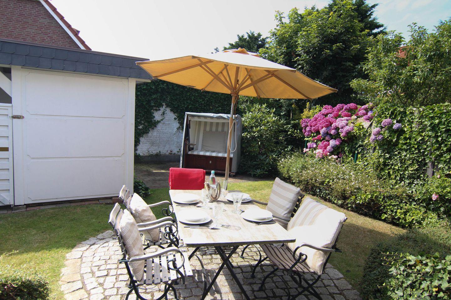 „Ekke 2“ liegt im ruhigen Norden von Westerland, sowohl das Zentrum als auch der Strand sind in wenigen Minuten zu Fuß zu erreichen. Auch, wenn zur Wohnung ein eigener Parkplatz direkt vor der Tür gehört, braucht man hier also nicht unbedingt ein Auto. Eine sonnige Südterrasse mit Strandkorb, Sonnenschirm und großem Tisch nebst Stühlen, ein Kinderbett, ein Hochstuhl, ein Extraabstellraum für Ihre Fahrräder, ein Hauswirtschaftsraum mit Waschmaschine und Wäschetrockner, all das beweist: Hier wurde wirklich an nichts gespart bei der Ausstattung. Und einen kleinen Extra-Wau-Effekt hat diese Sylter Ferienwohnung auch noch in petto: Hier sind Hunde willkommen.