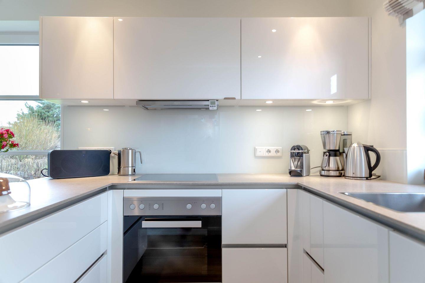 Die offene, hochwertig ausgestattete Küche macht das Kochen zu einem gemeinsamen Erlebnis. Zwei separate Schlafzimmer mit Doppelbetten sorgen für erholsame Nächte, für bis zu 2 Kinder kann die Couch im Wohnbereich aufgebettet werden.
