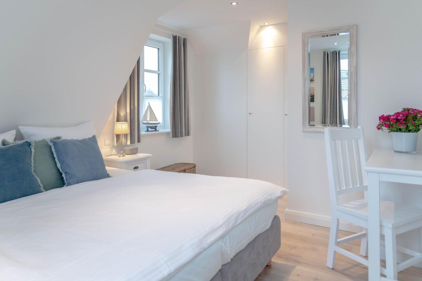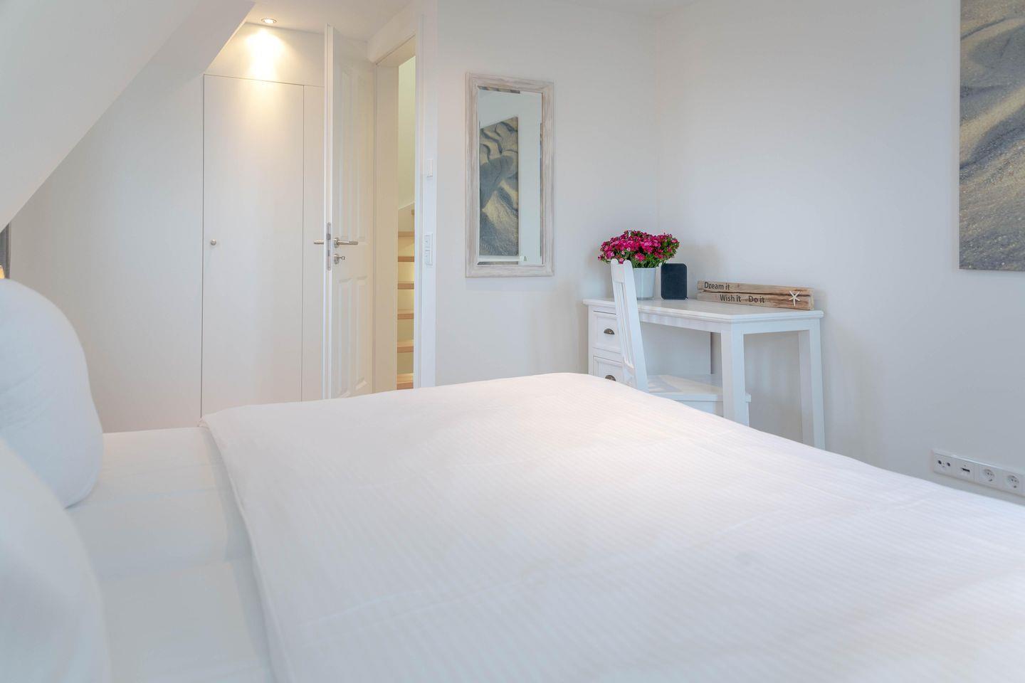 Ihr stilvolles Feriendomizil bietet auf 105 m² Platz für bis zu 6 Personen. Zwei Schlafzimmer, zwei Bäder und ein großzügiger Wohnbereich sorgen für Komfort. Entspannen Sie im großen Garten mit Sandkasten, auf der Terrasse oder im Strandkorb. Highlights: Sauna, Bluesound Musiksystem, Weinkühlschrank, WLAN, Waschmaschine/Trockner, Parkplatz. Hunde sind willkommen, Rauchen ist nicht erlaubt.