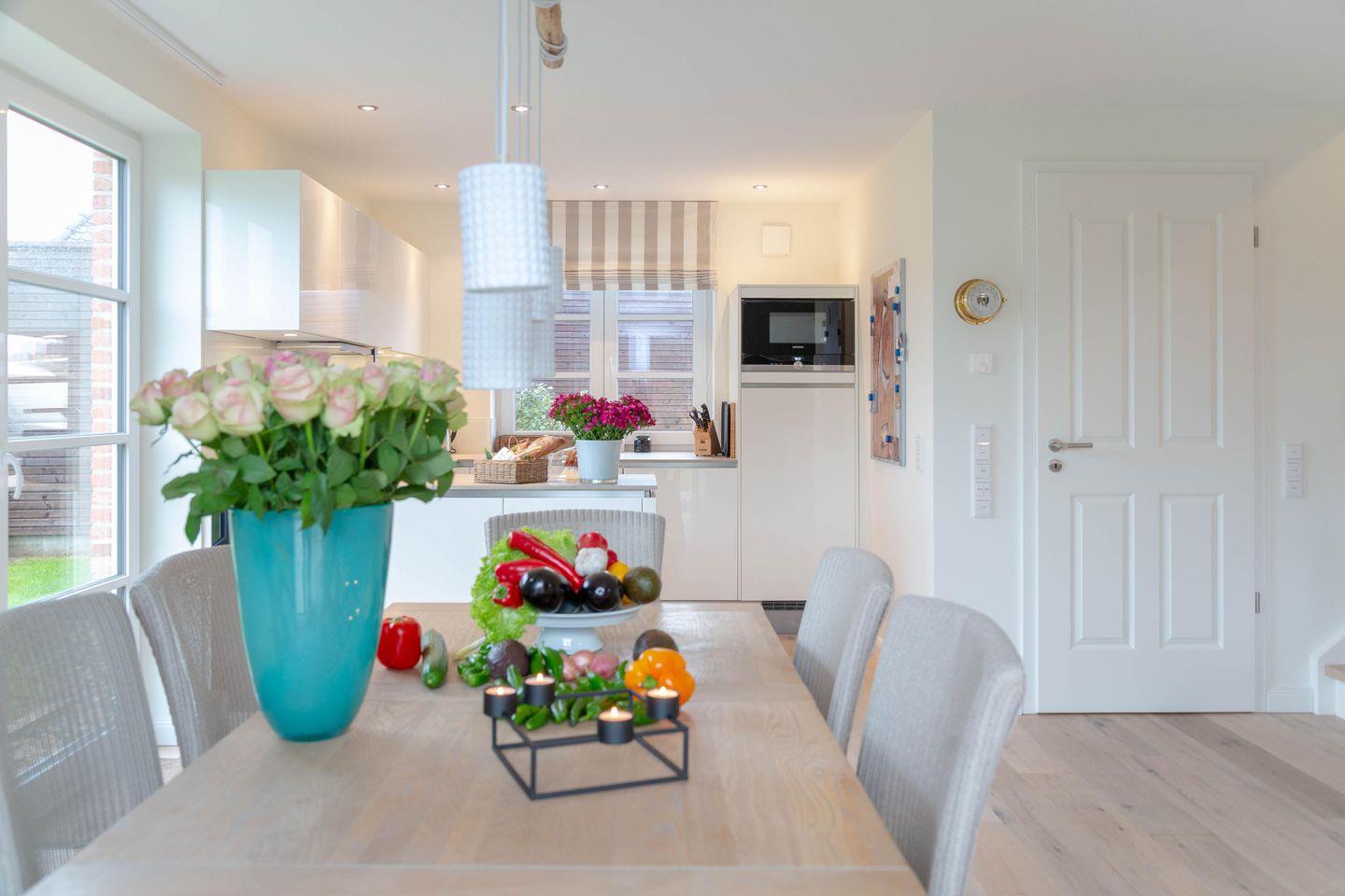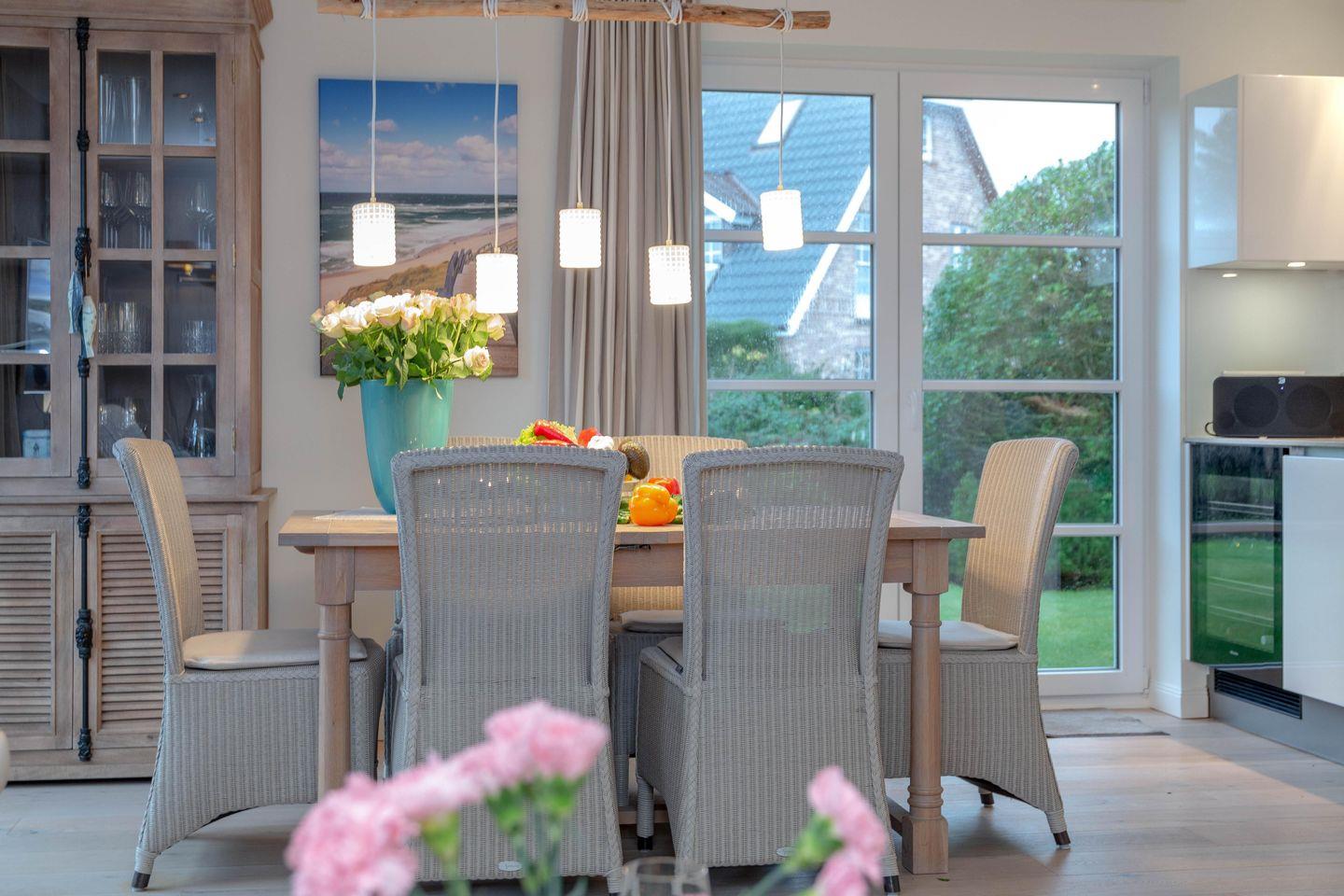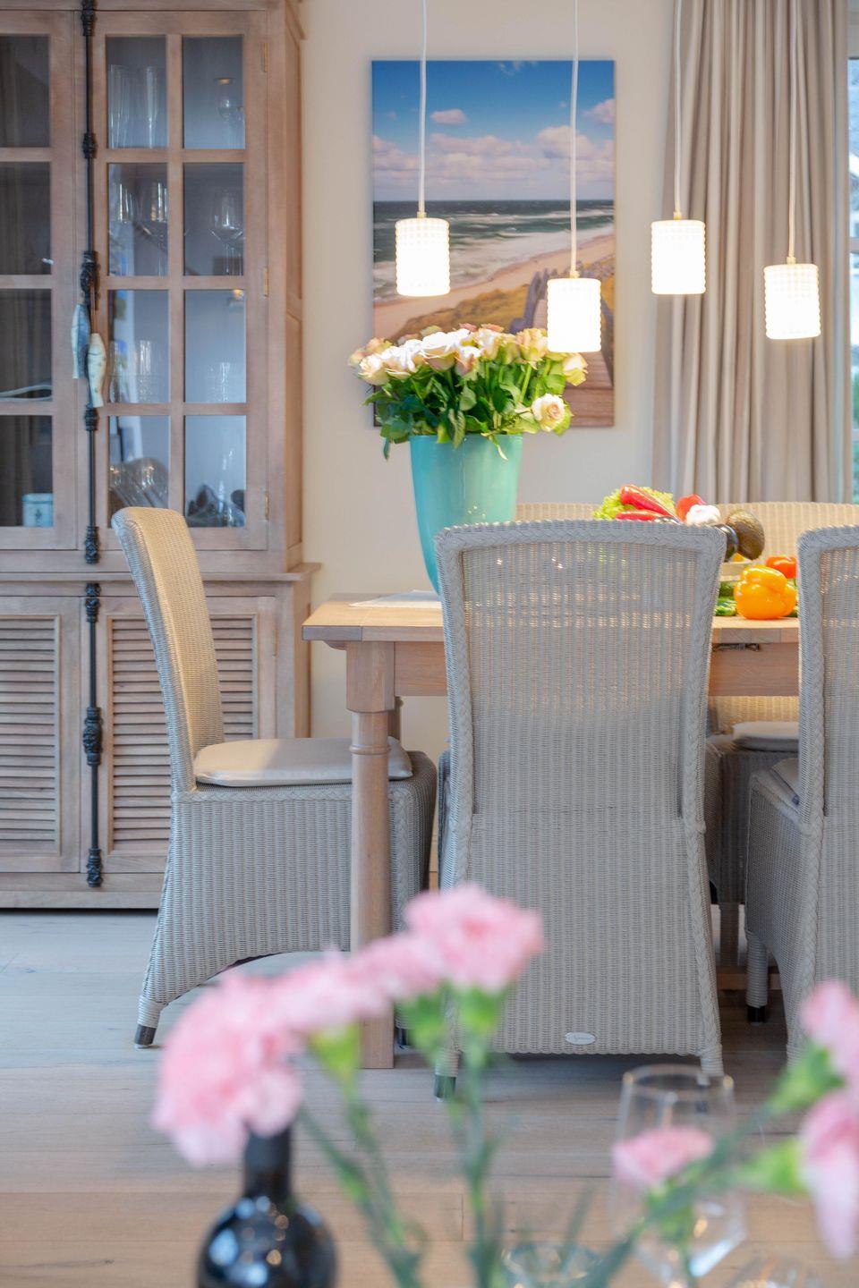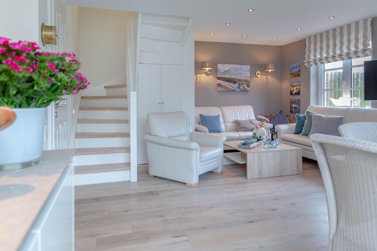 Erleben Sie ein stilvolles Ambiente im modernen Landhausstil, harmonisch ergänzt durch maritime Akzente – eine perfekte Wohlfühloase für Ihren Urlaub. Die großzügigen, lichtdurchfluteten Wohn- und Schlafbereiche laden selbst an Regentagen zum Entspannen ein und bieten viel Platz für gesellige Stunden mit Familie und Freunden.