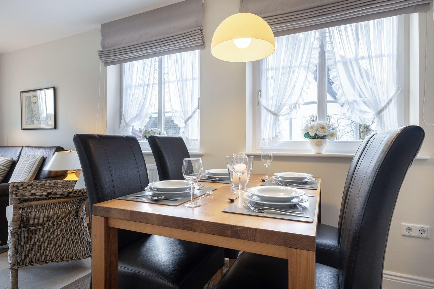 Willkommen in der Ferienwohnung Rosenkamp, App. 3 auf Sylt! Diese gemütliche Unterkunft mit 63 m² Nutzfläche bietet Platz für bis zu 4 Personen und überzeugt durch ihre Ausstattung. Genießen Sie die offene Küche, das helle Wohnzimmer mit Essbereich und die sonnige Terrasse mit Gartenmöbeln. Erleben Sie erholsame Tage auf der wunderschönen Insel Sylt!