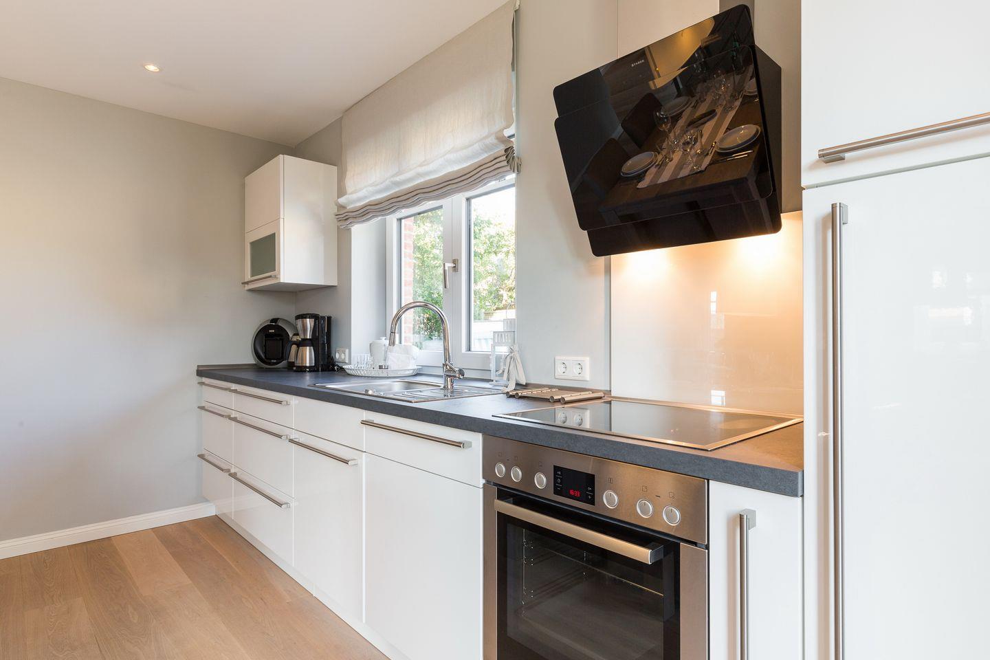 Ihr schöner Essbereich befindet sich vor der luxuriösen Küche, die Ihnen alles bietet, was Ihnen -auch als ambitioniertem Hobbykoch- goutiert. Ebenfalls im Erdgeschoss befindet sich ein Schlafbereich mit Doppelbett (180x200cm) und Flat-TV sowie ein modernes Luxusbad mit großzügiger Dusche, feinen Materialien und Armaturen.