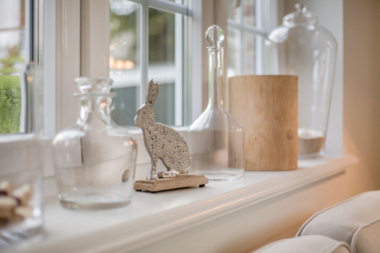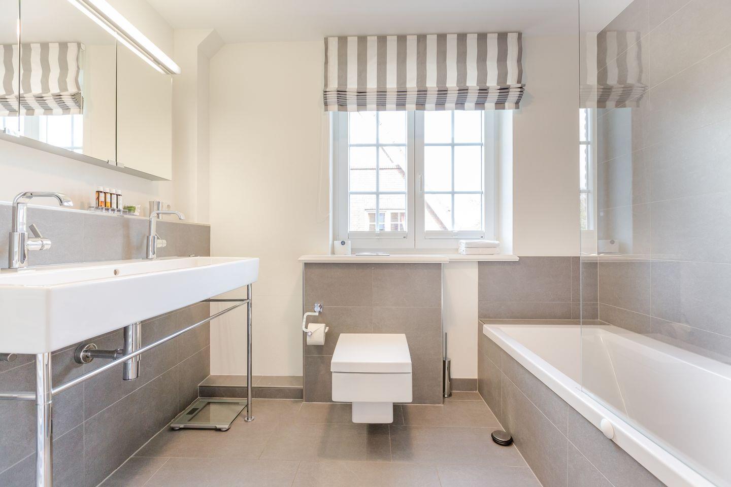 Beim Betreten des „Landhaus Hooge“ können Sie sich auf einen großzügigen, hochwertig eingerichteten Wohnbereich freuen. Vom Wohn- und Essbereich aus schauen Sie auf den Kamin, der für kuschelige Abende in der dunklen Jahreszeit sorgt. Die Küche ist offen gestaltet und mit Geschirrspülmaschine, Microwelle und Backofen ausgestattet. Vom Wohnzimmer aus betreten Sie Ihre möblierte, private Terrasse mit angeschlossenem Garten. Im Erdgeschoss finden Sie außerdem ein Gästebad mit WC und Dusche.
