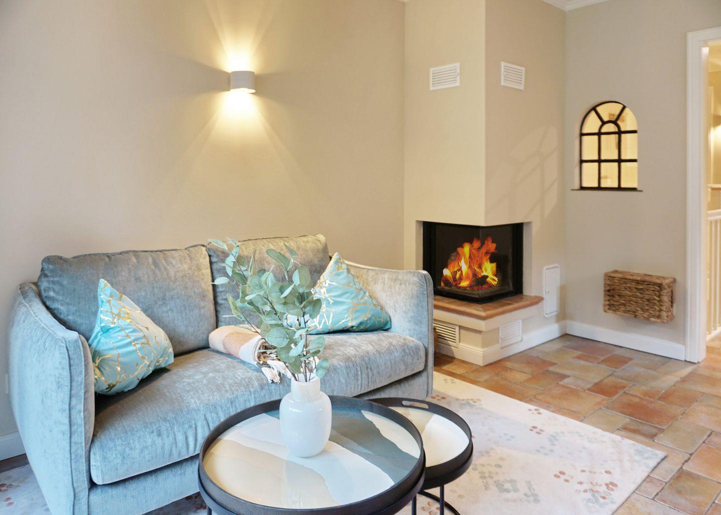 Der helle und geräumige Wohnbereich bietet ausreichend Platz für vier Personen. Ein schöner Essbereich und eine gemütliche Sitzecke, mit einem Kamin, laden zum Entspannen bei einem Glas Wein ein.