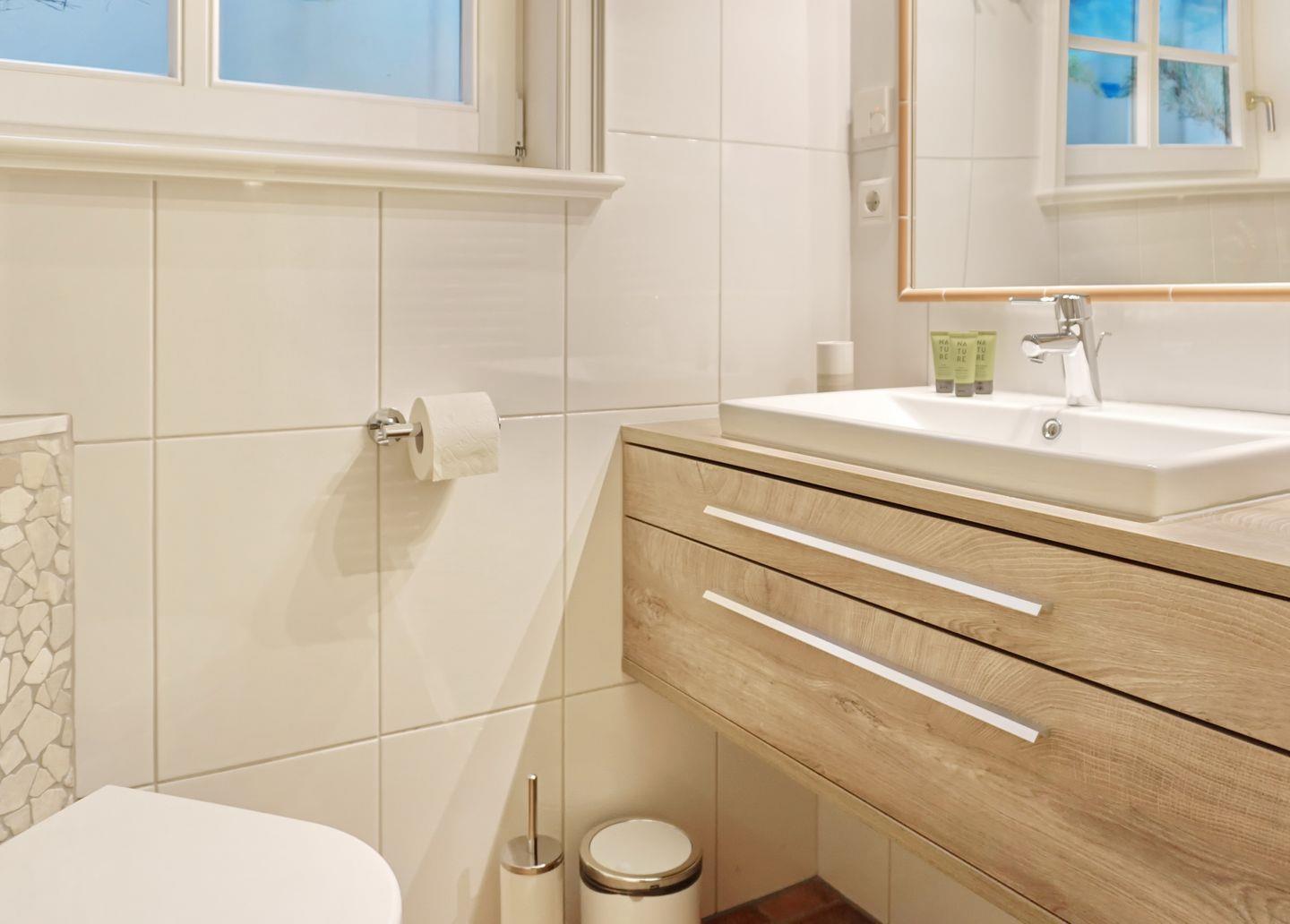 Im Eingangsbereich ist ein gemütliches Gäste-WC vorhanden.