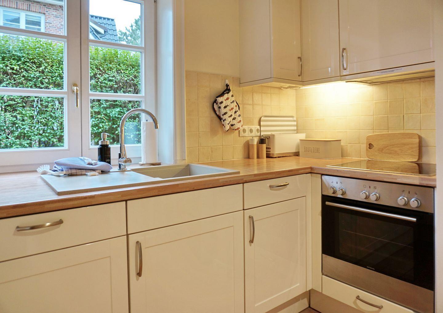 In der sep. Küche, können Sie nach Herzenswunsch kochen. Die Ausstattung ist wie folgt, mit Backofen, Mikrowelle, Geschirrspülmaschine, 1x Nespresso-Kapselmaschine, 1x Filtermaschine, Toaster, Wasserkocher, sowie Kühlschrank mit kl. Gefrierfach.
