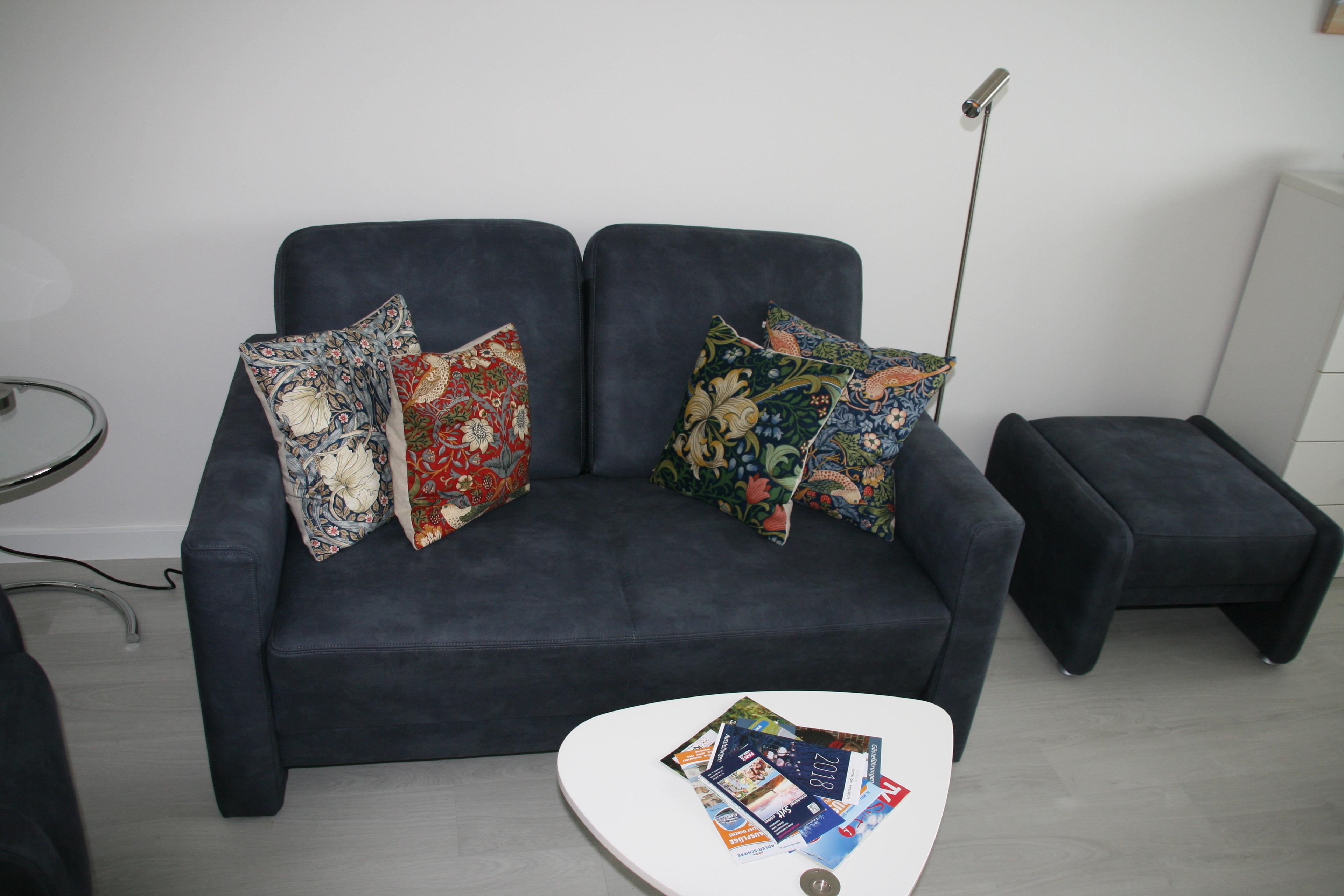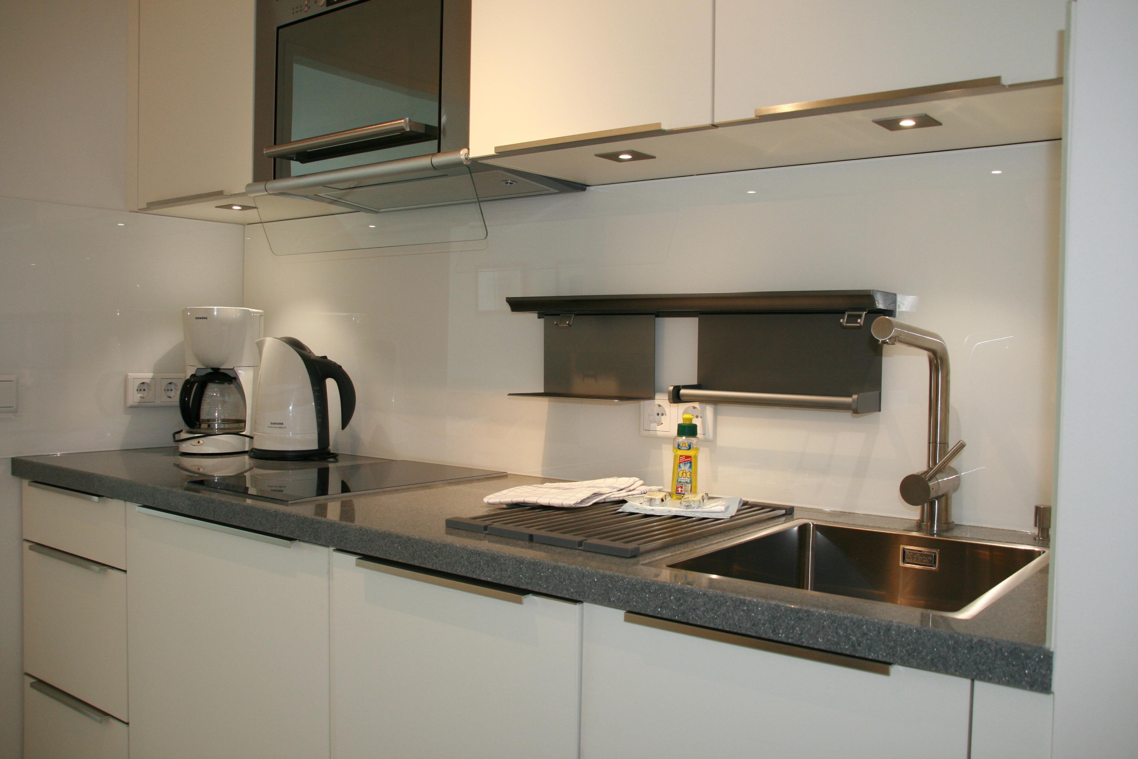 Vorflur mit moderner Küchenzeile mit Geschirrspüler, modernes helles Duschbad/WC, heller renovierter Wohn-/Schlafraum mit zwei Einzelschrankbetten, Sitzgarnitur (Sofa und Sessel), Essplatz am Fenster, Flachbildfernseher, WLAN-Radio, hauseigenes freies WLAN. Ein Balkon rundet dieses schöne, helle und freundlich eingerichtete,ca. 34 qm große, Appartement ab. Ein Abstellplatz in der Tiefgarage kann hinzugemietet werden. Der Tiefgaragenplatz muss bestellt werden, ansonsten verfällt der Anspruch!