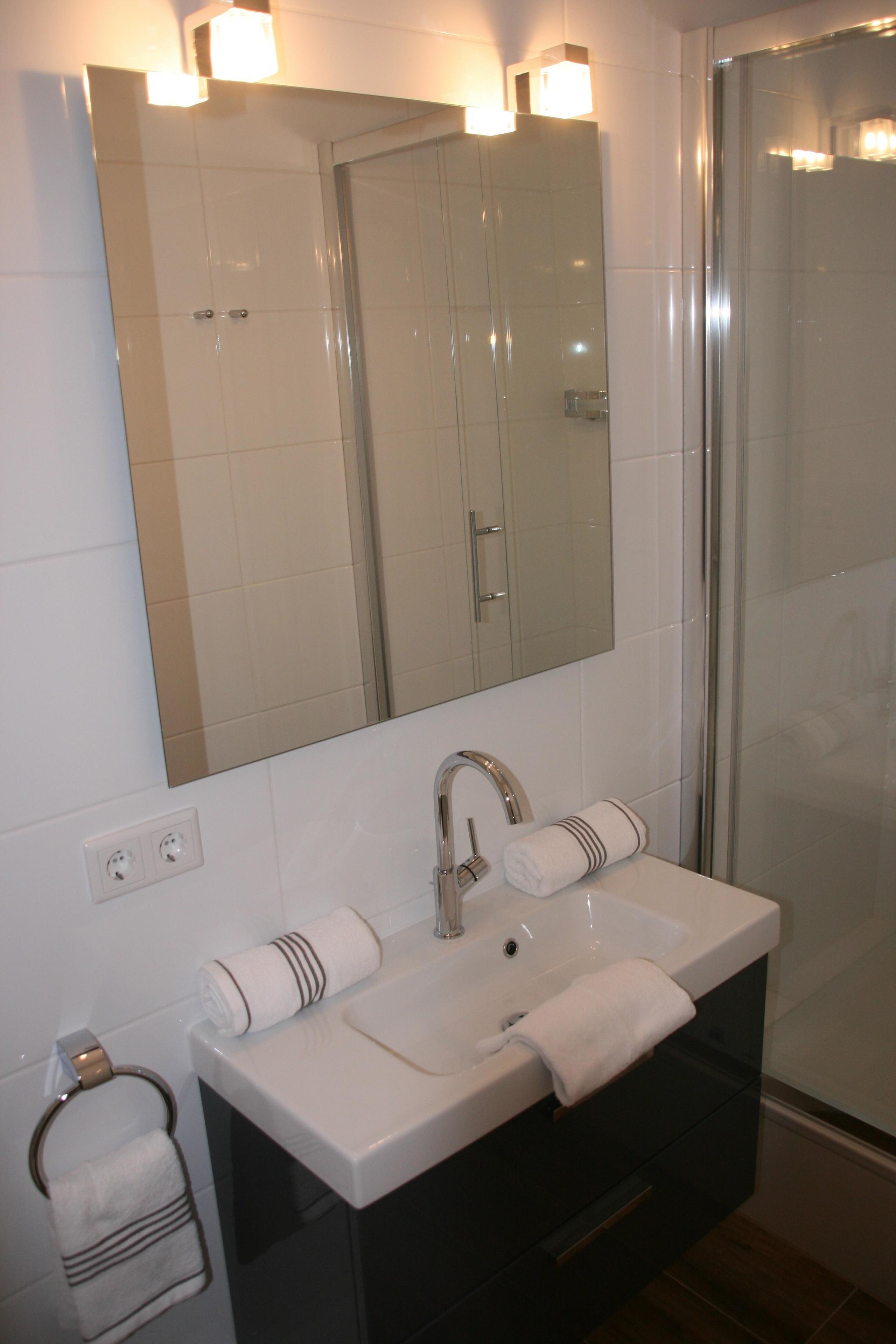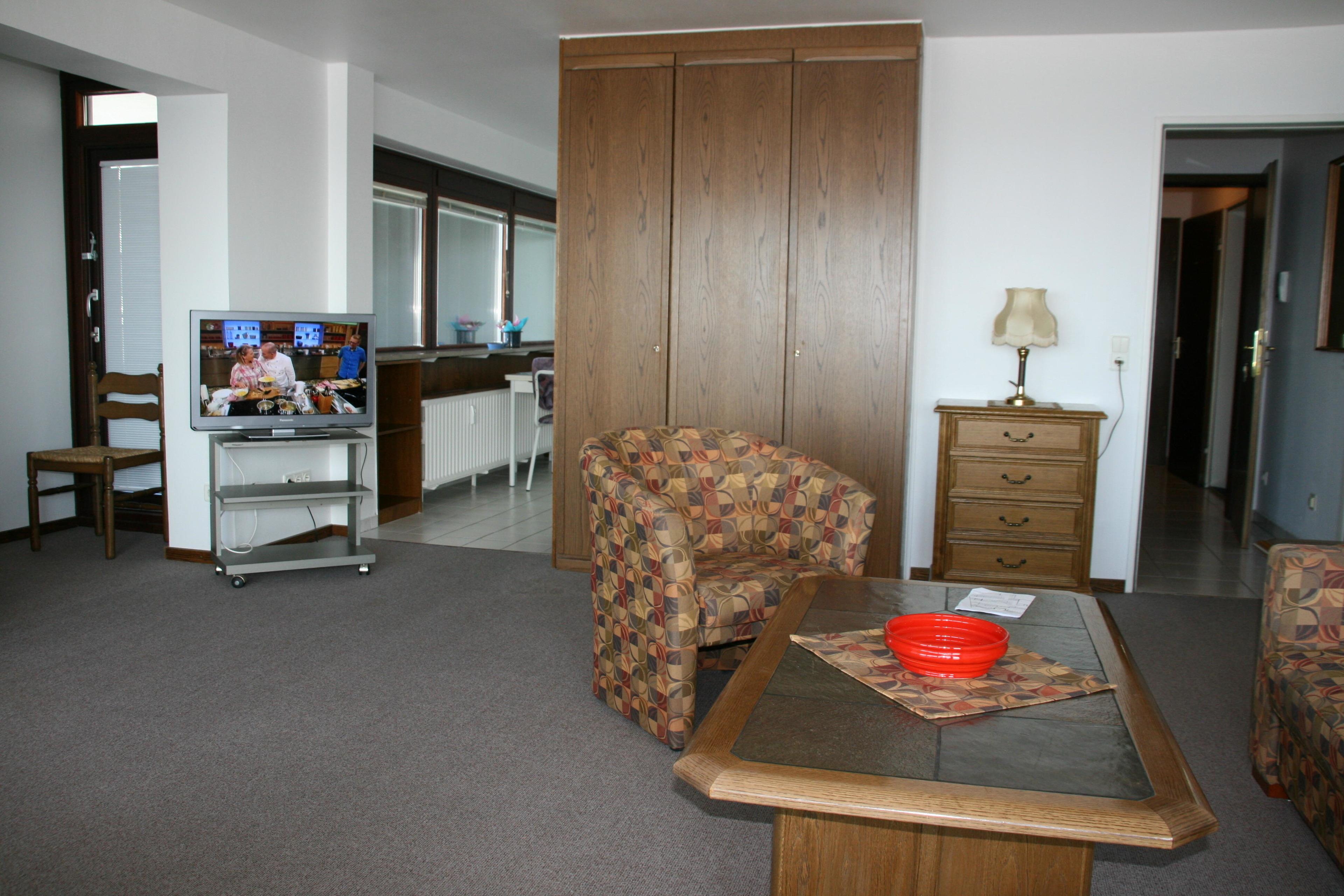Kleiner Vorflur, neues modernes helles kleines Bad mit Dusche / WC, großer Wohn-/Schlafraum mit zwei Einzelschrankbetten, Sitzgarnitur (Sofa und 2 Sessel), Flachbildfernseher, Radio- und CD-Player, hauseigenes freies WLAN. , Balkon zum Westen - volle SEESEITE. Große sep. Küchenzeile mit großzügigen Essplatz am Fenster, von diesem hat der Gast einen herrlichen Blick auf den nördlichen Strand. Dieses schöne Appartement hat eine Gesamtgröße von ca. 50 qm einschl. Balkone.