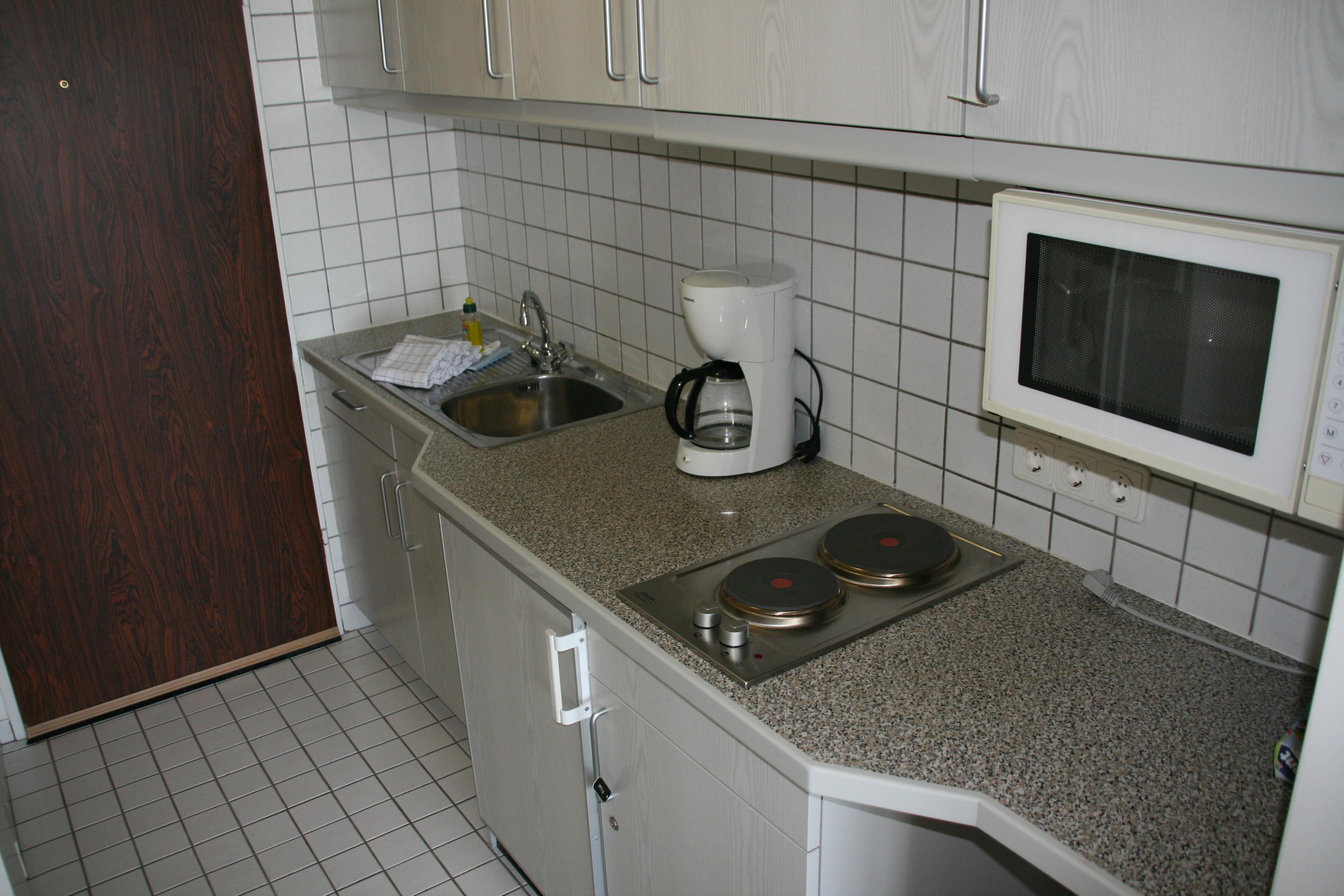 Vorflur mit moderner Küchenzeile, renoviertes helles Duschbad / WC , renoviertes Wohn-/Schlafraum mit einem Einzelschrankbetten, Essplatz, Sofa, Flachbildfernseher, Radio. Ein Balkon rundet dieses schöne und ca. 25 qm große Appartement ab. Im Hause befindet sich eine Waschküche mit Trockner. Haustiere sind im Appartement nicht gestattet. Hauseigenes kostenfreies WLAN.