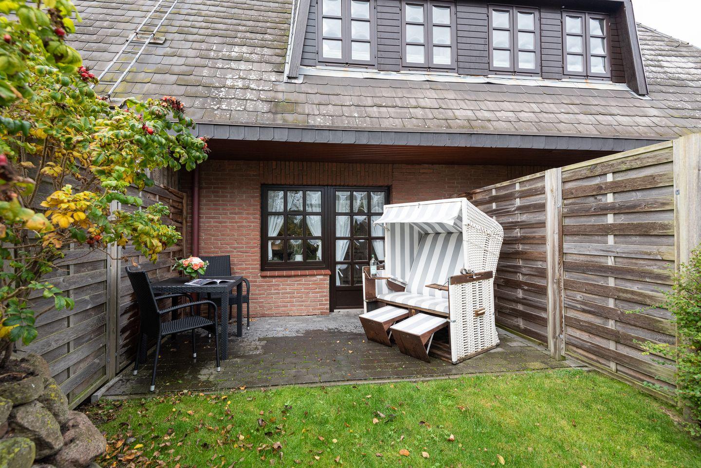 Gemütliche 1-Zimmer-Erdgeschosswohnung mit Terrasse und Strandkorb in ruhiger, zentraler Lage von Westerland auf Sylt.