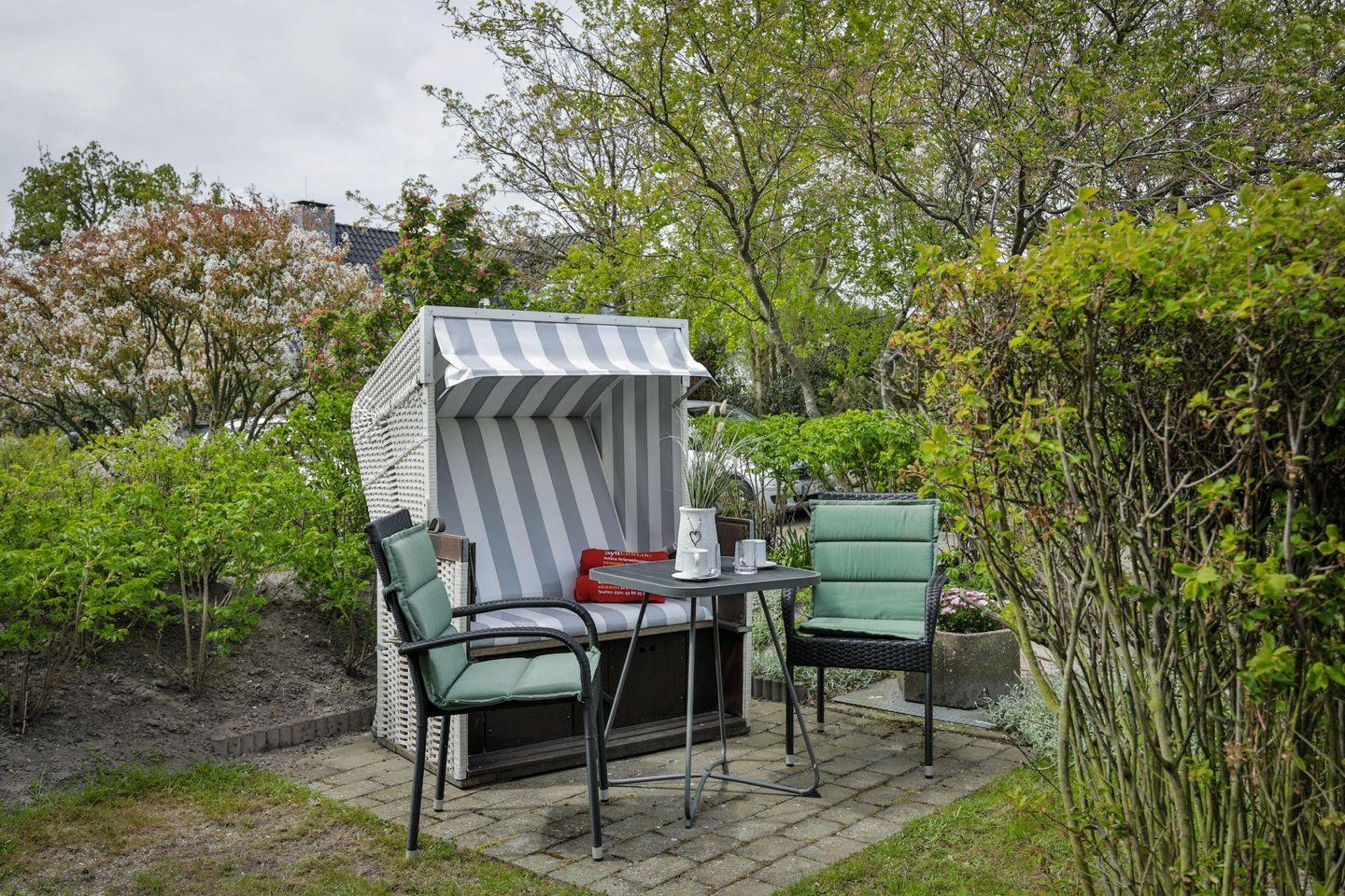 Garten: Im Garten steht Ihnen eine Sonnenkuhle Richtung Norden mit Gartenmöbeln und Strandkorb zur Verfügung.