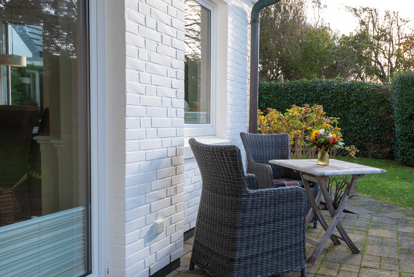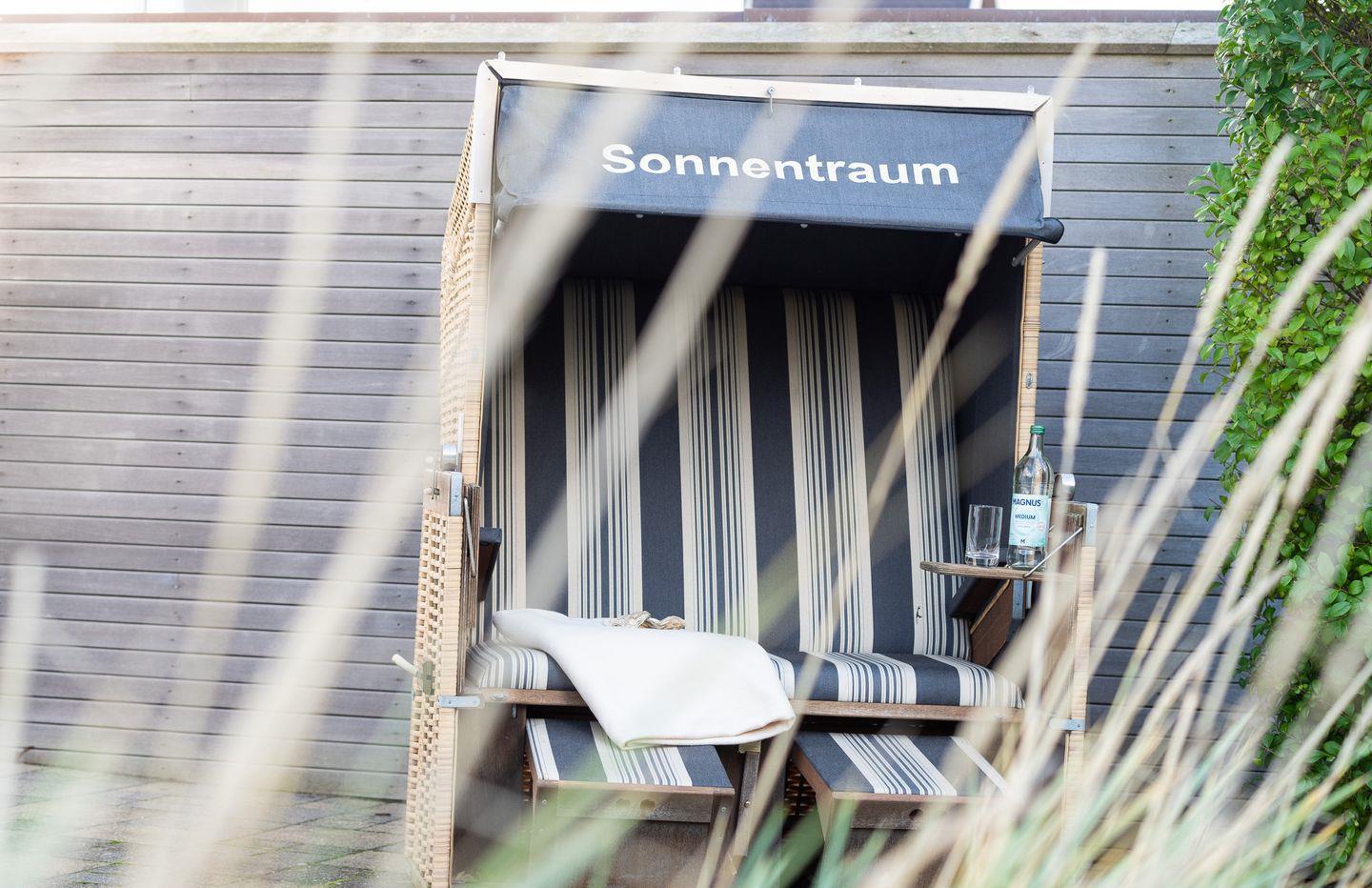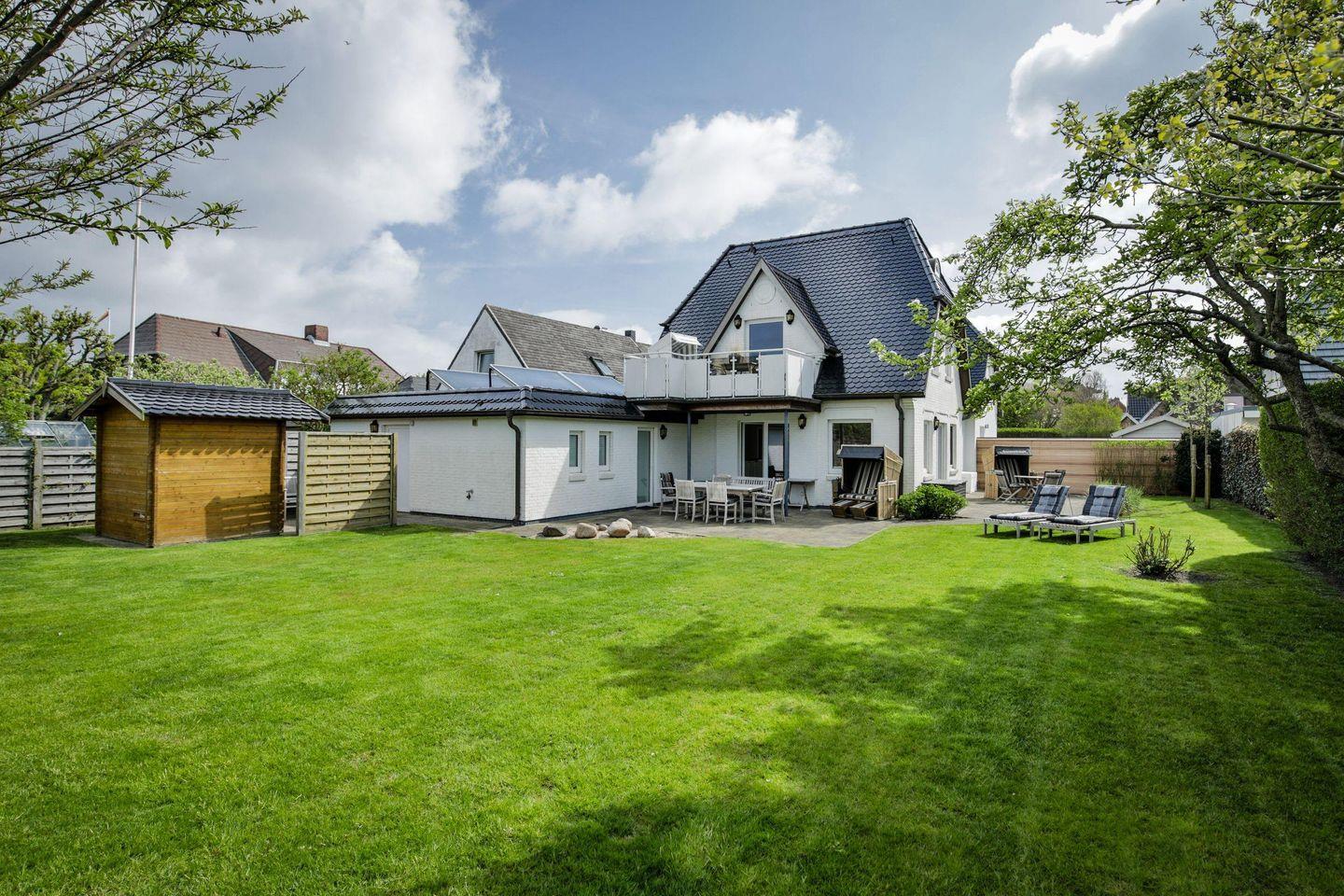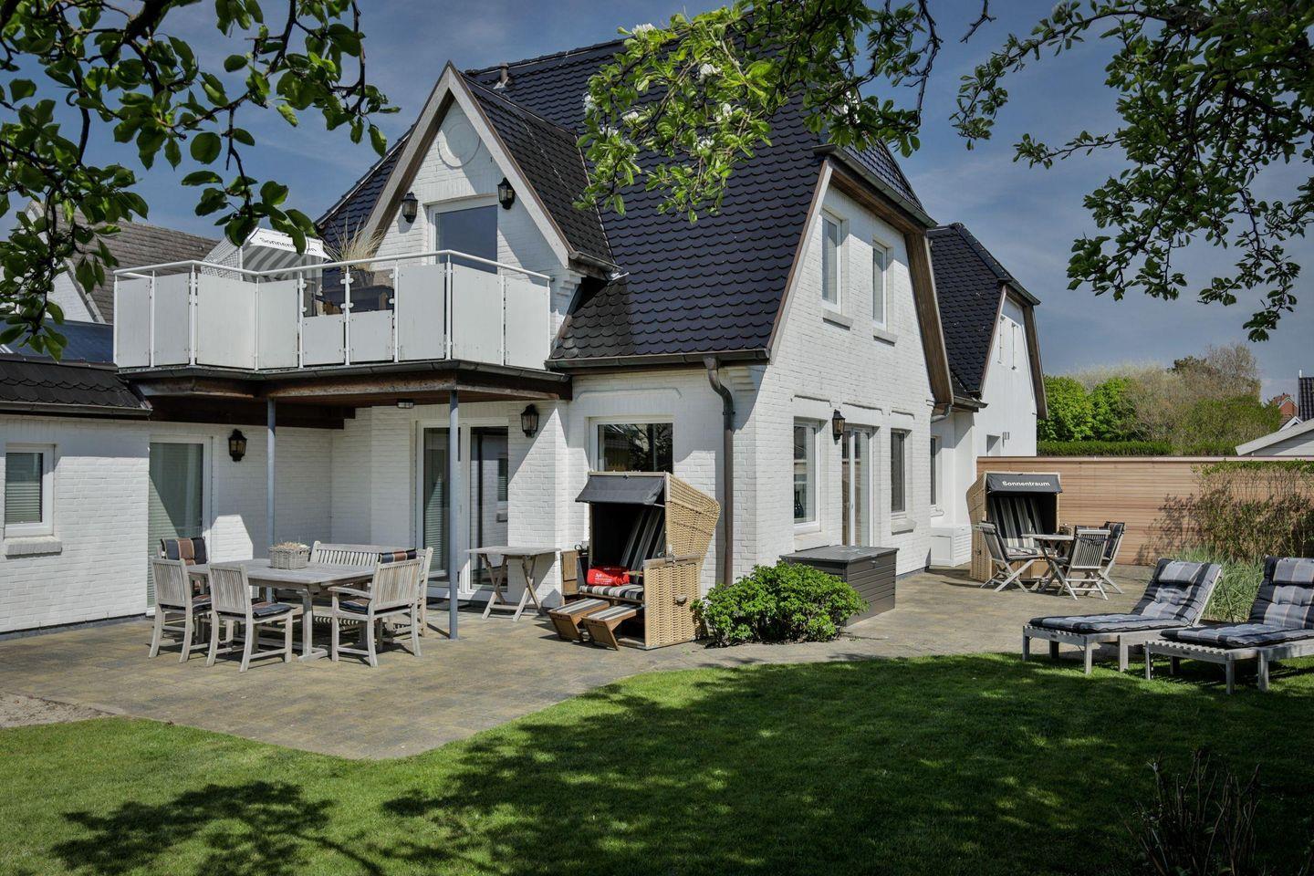 Helle 3-Zimmer-Ferienwohnung in ruhiger Lage von Westerland mit Terrasse und Sauna im Gemeinschaftsgarten.
