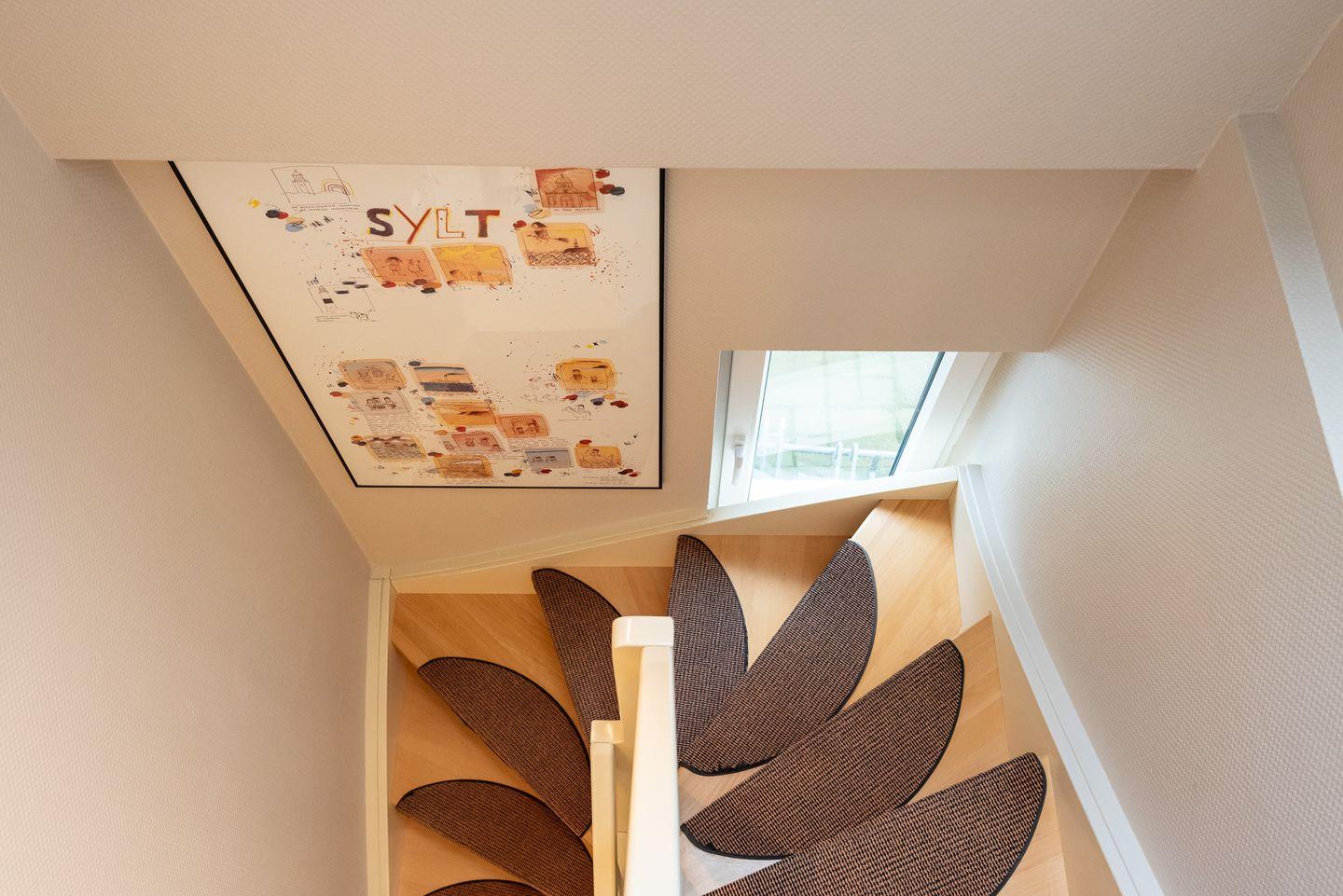 Über eine gut begehbare Treppe gelangen Sie in das Obergeschoss.