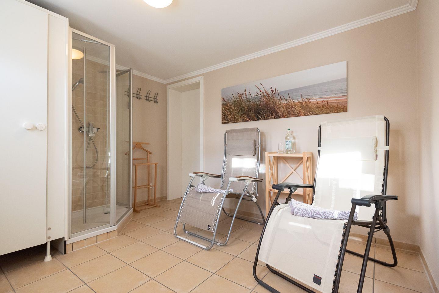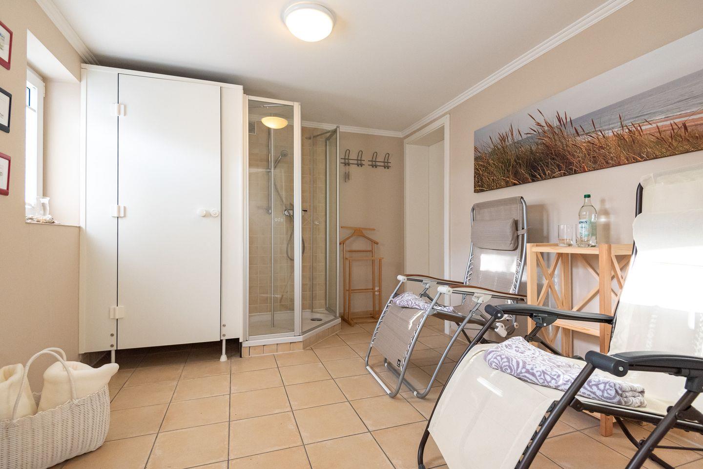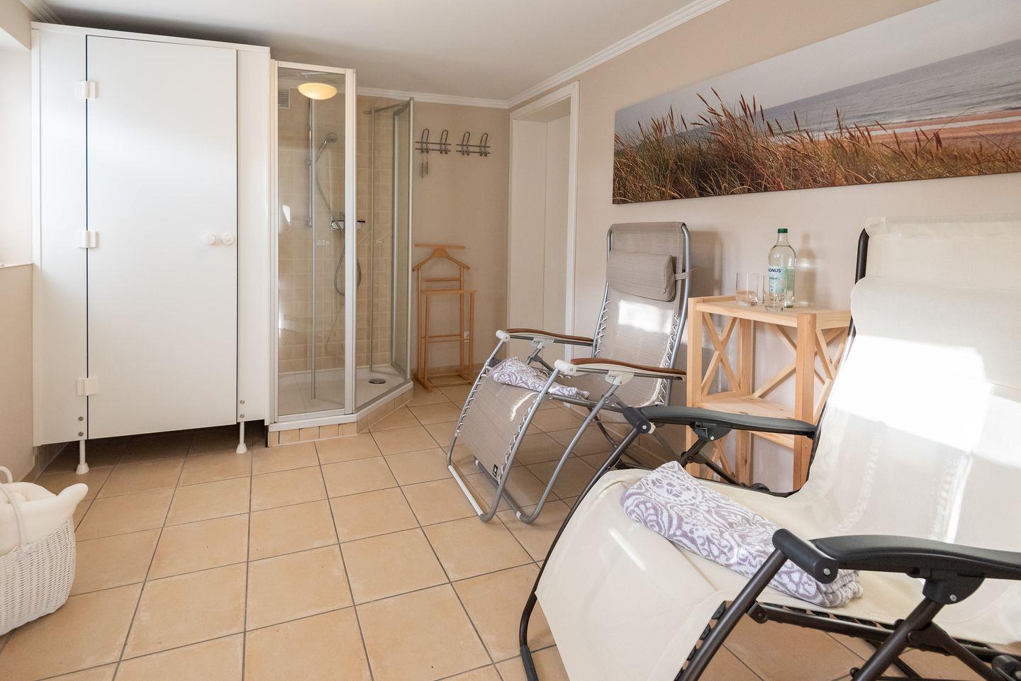 Besonderheiten: Besonderheiten: Der Endpreis beinhaltet neben der Endreinigung, Internet-Flatrate auch das komplette Wäschepaket mit Handtüchern, kostenlose Benutzung von Waschmaschine und Trockner im Gemeinschaftsraum sowie fertig bezogene Betten, damit Sie Ihren Urlaub von Anfang an genießen können. Im Gartenhaus steht Ihnen eine Sauna zur gemeinschaftlichen Nutzung zur Verfügung sowie einen zusätzlichen Ruheraum mit Dusche und WC.