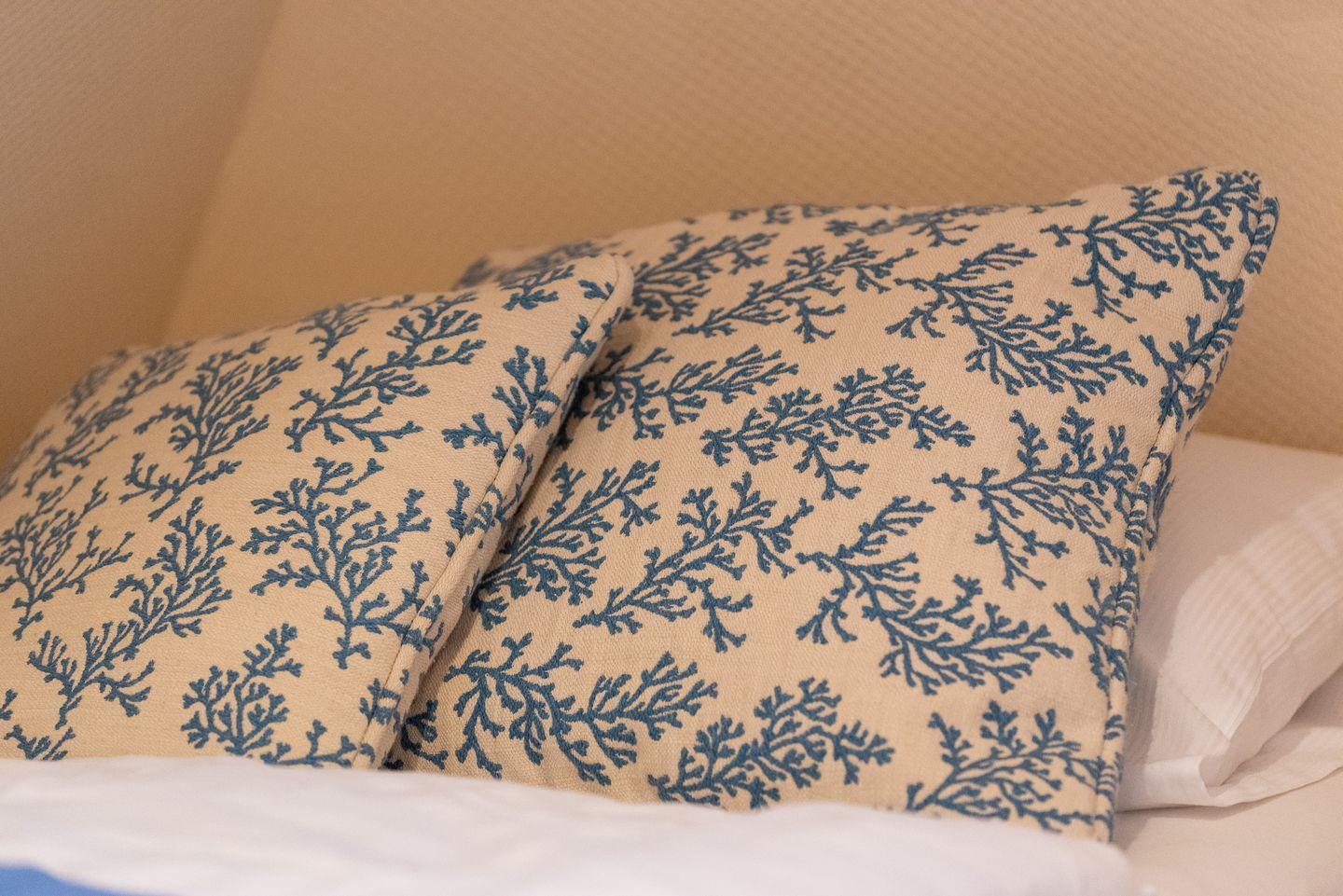 Schlafzimmer 1: Gemütliches Doppelbettschlafzimmer mit Einbauschränken im Friesenstil.