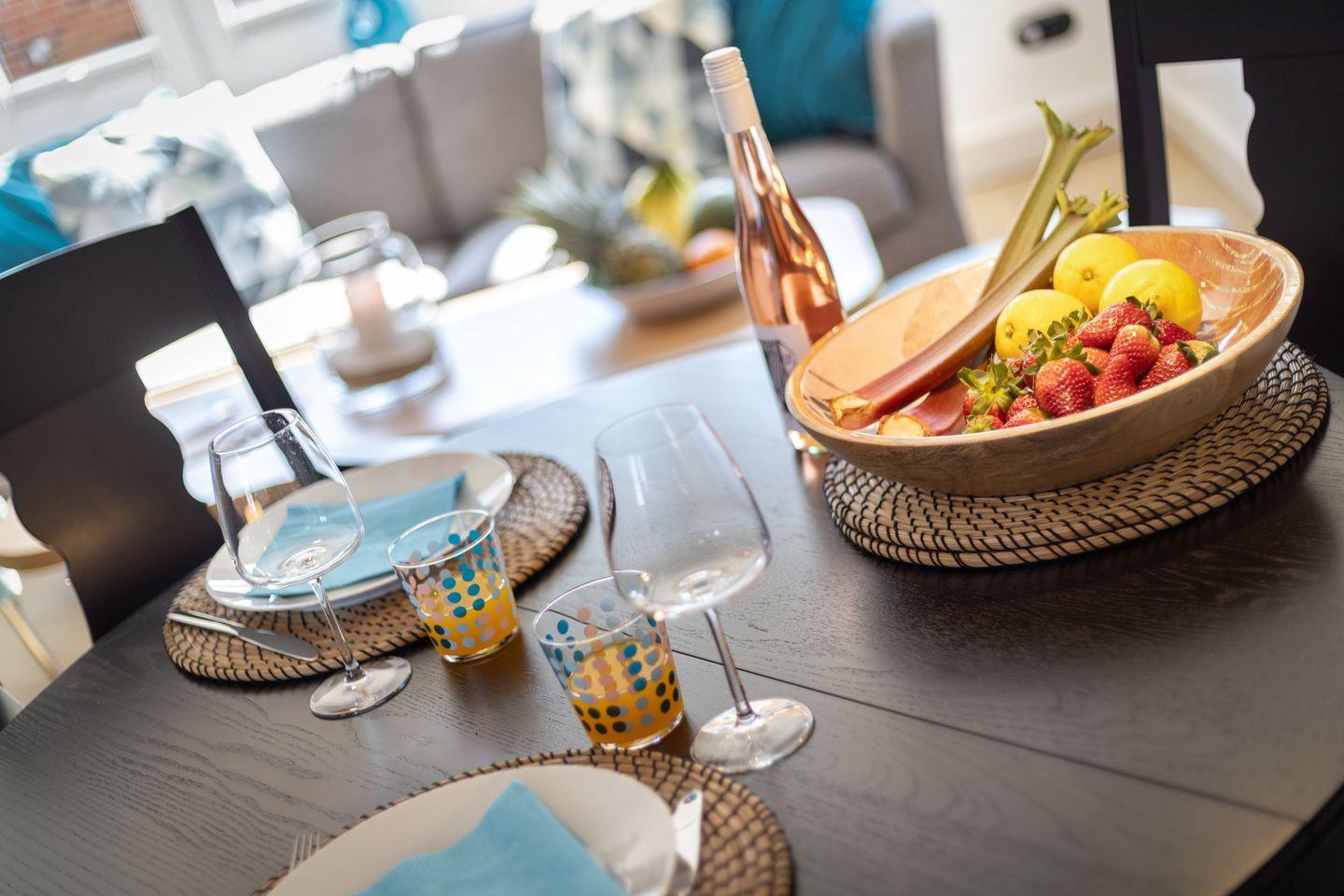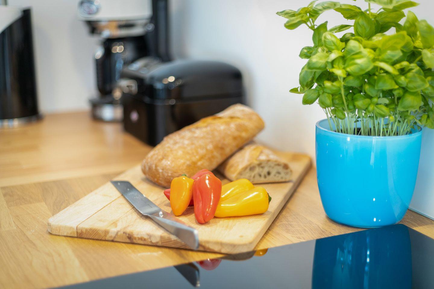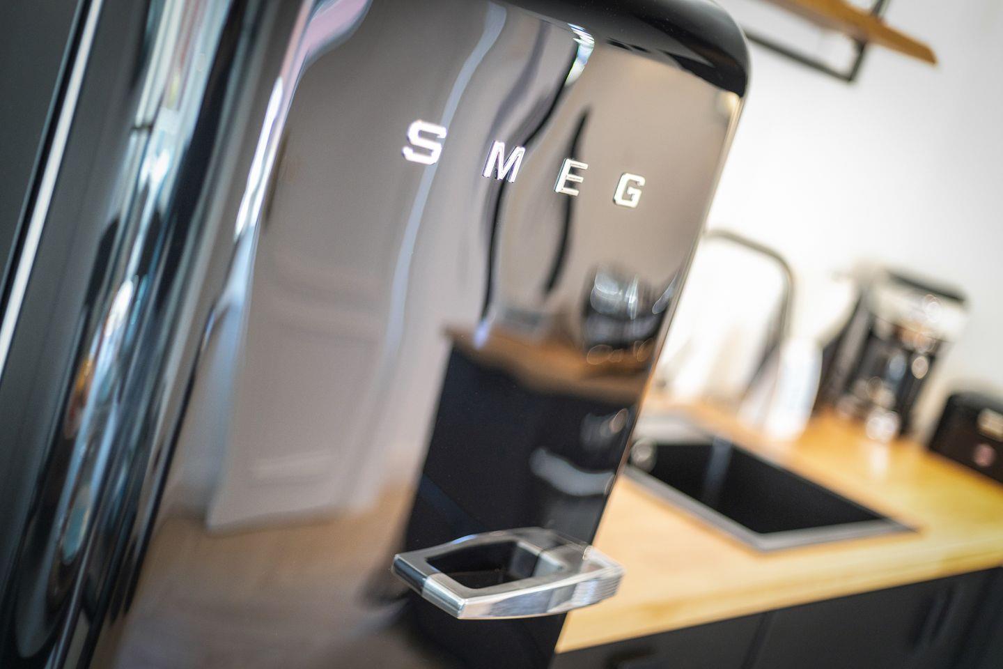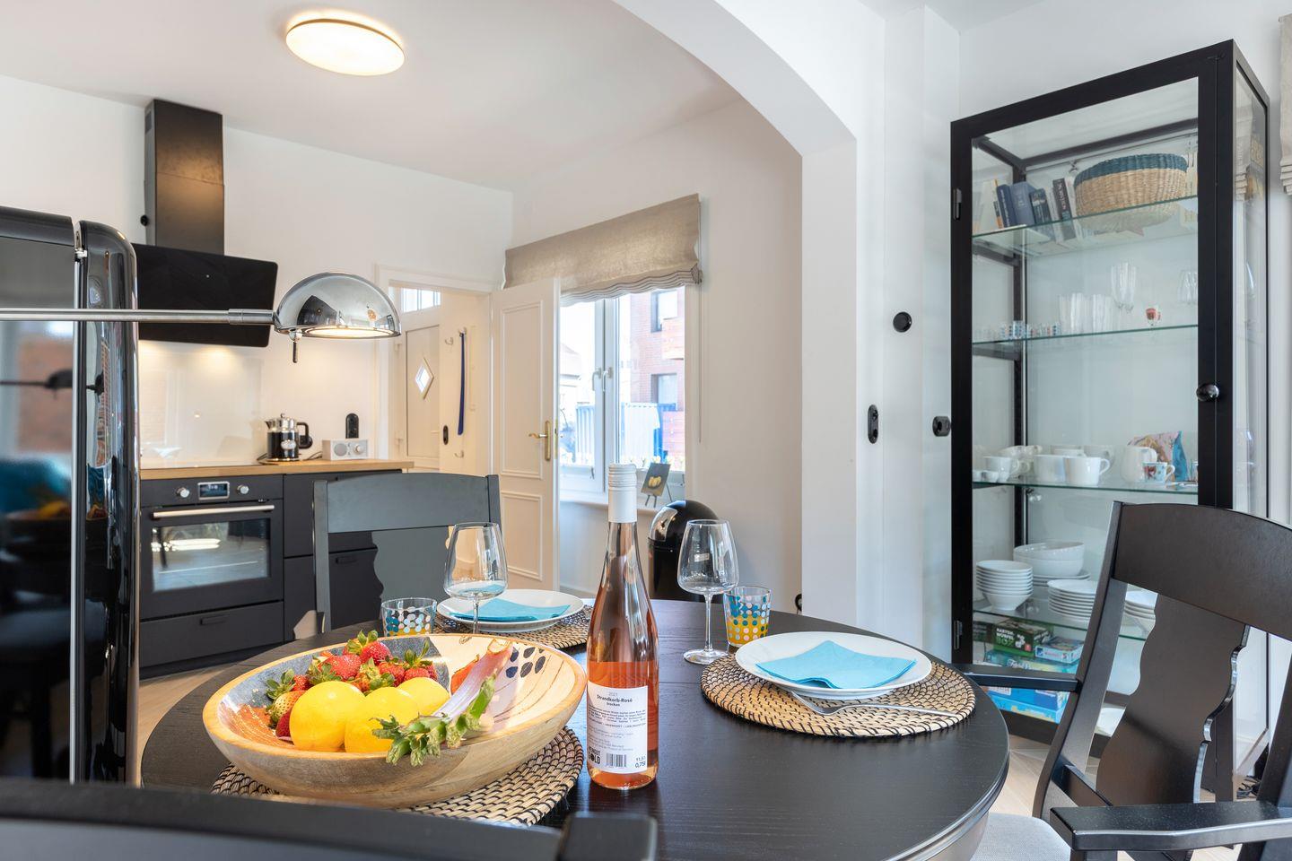 Bei der Einrichtung von Achtern wurde besonderen Wert auf geschmackvolles und bequemes Mobiliar gelegt, es gibt ein großes Boxspringbett, ein gemütliches Wohnzimmer, einen Esstisch und eine perfekt eingerichtete Küche mit Spülmaschine, Backofen und einem geräumigen Kühlschrank.
