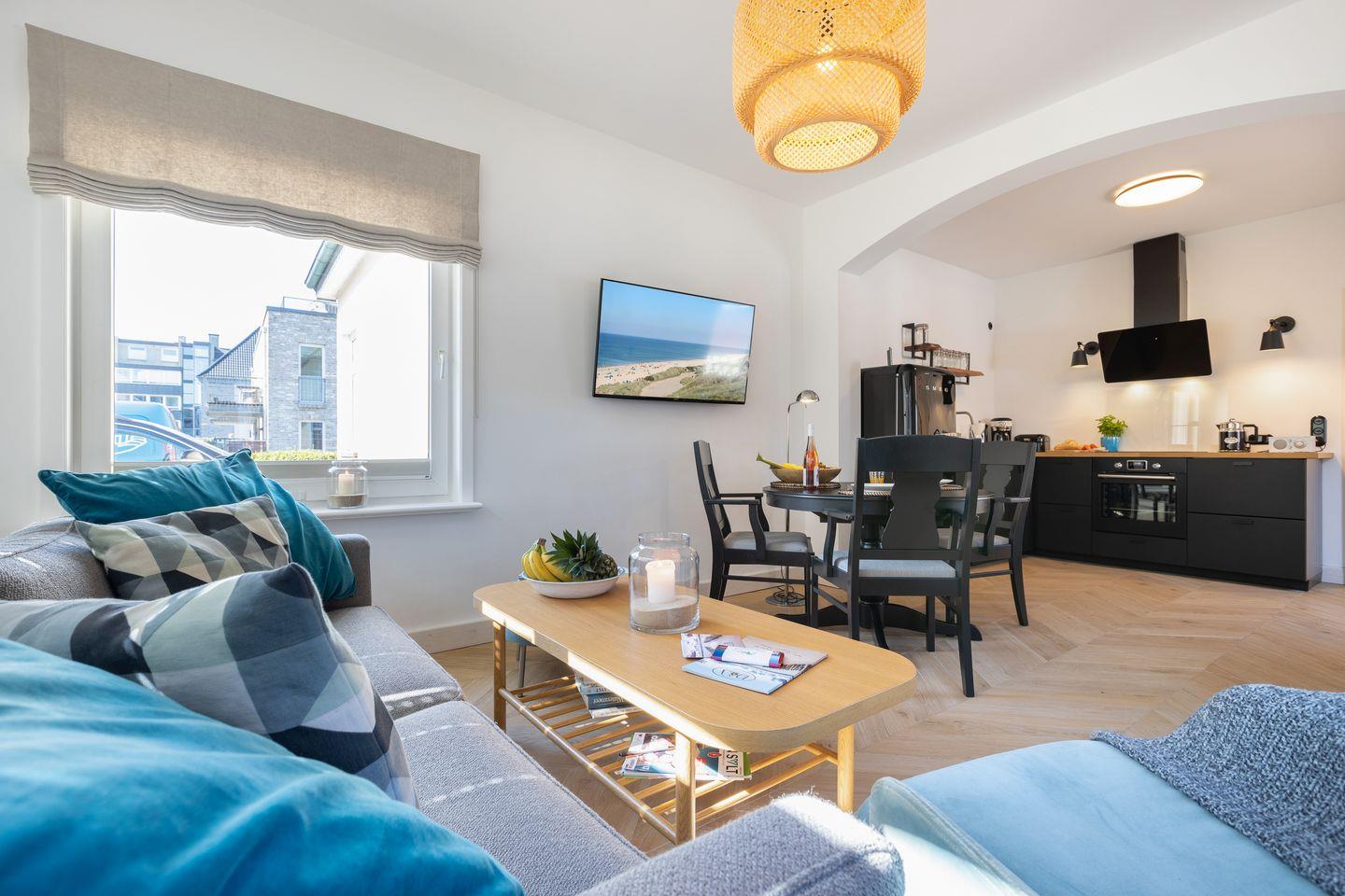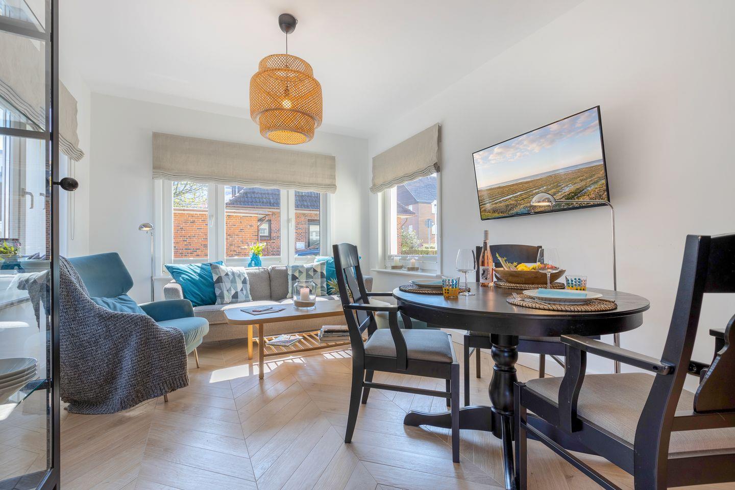 Ihre Wohnung Achtern befindet sich im Erdgeschoss, hat ein Schlafzimmer für bis zu 2 Personen, ein Badezimmer mit Badewanne und ein Wohnzimmer mit einer angrenzenden offenen Küche.