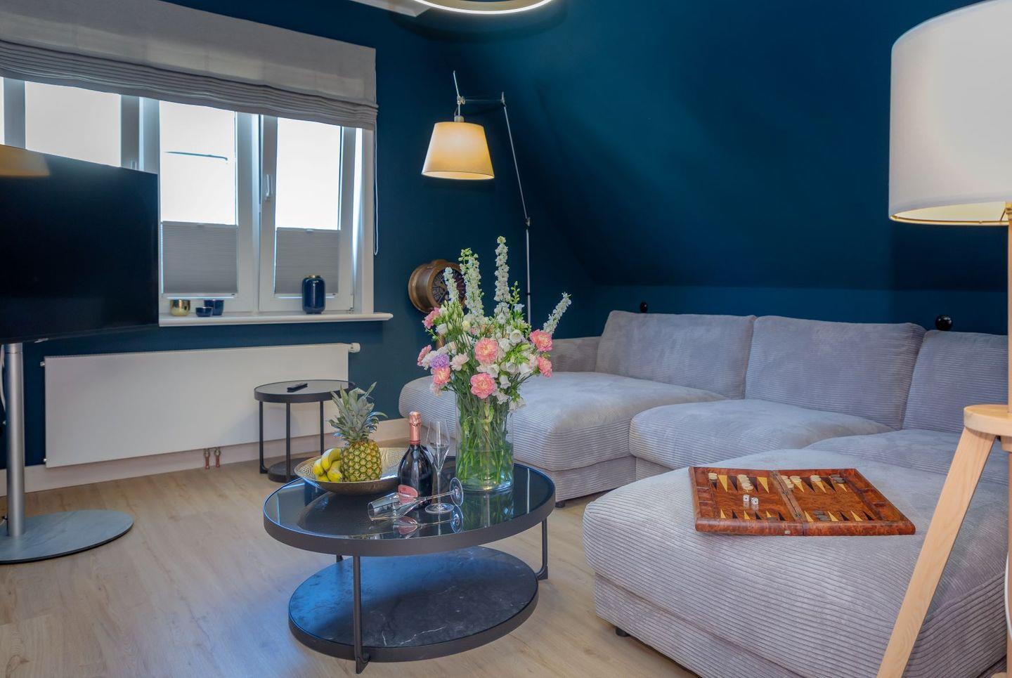 Moderne Ferienwohnung Backbord in Westerland, strandnah und zentral, mit WLAN, Terrasse und privatem Parkplatz.