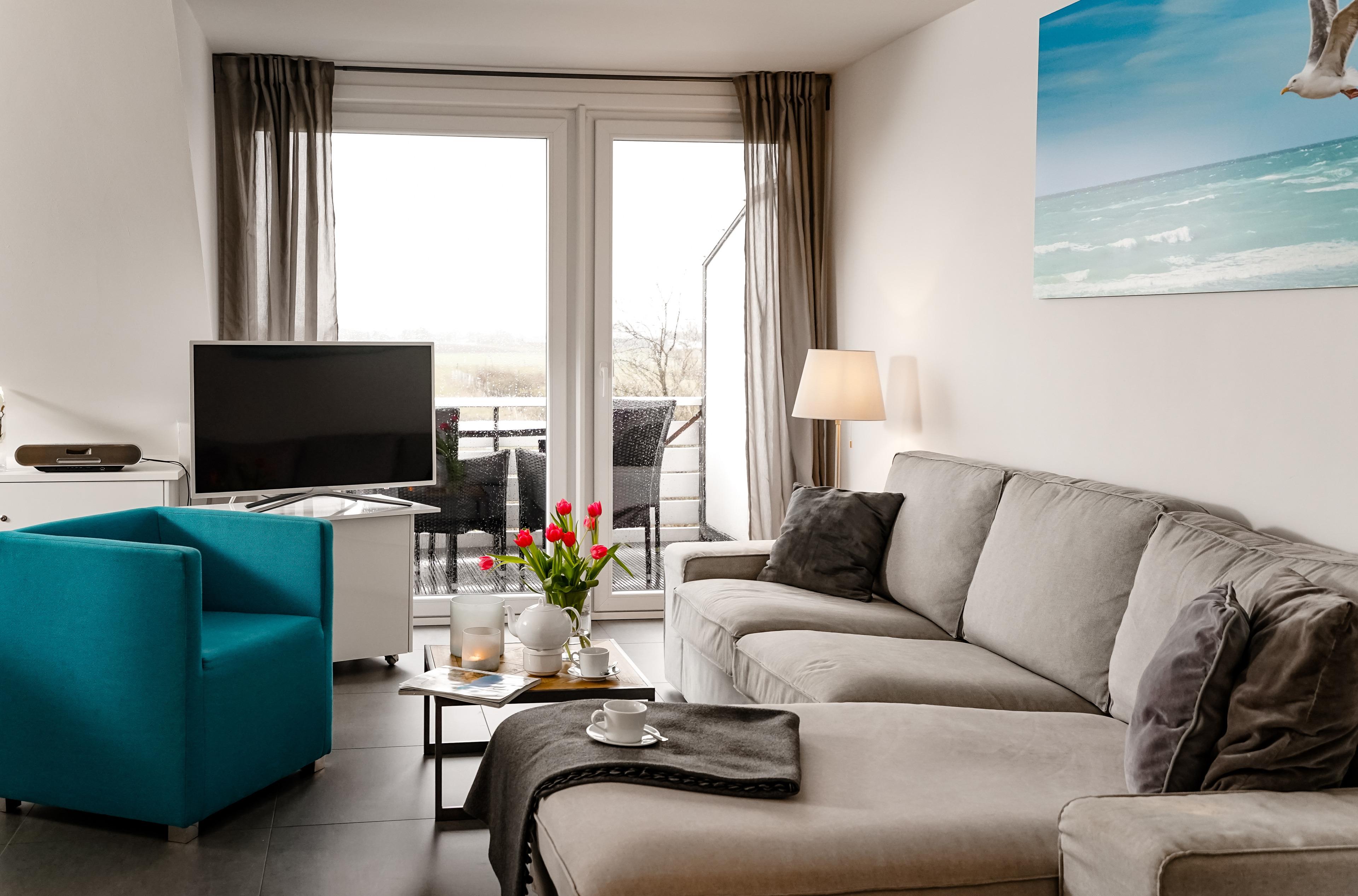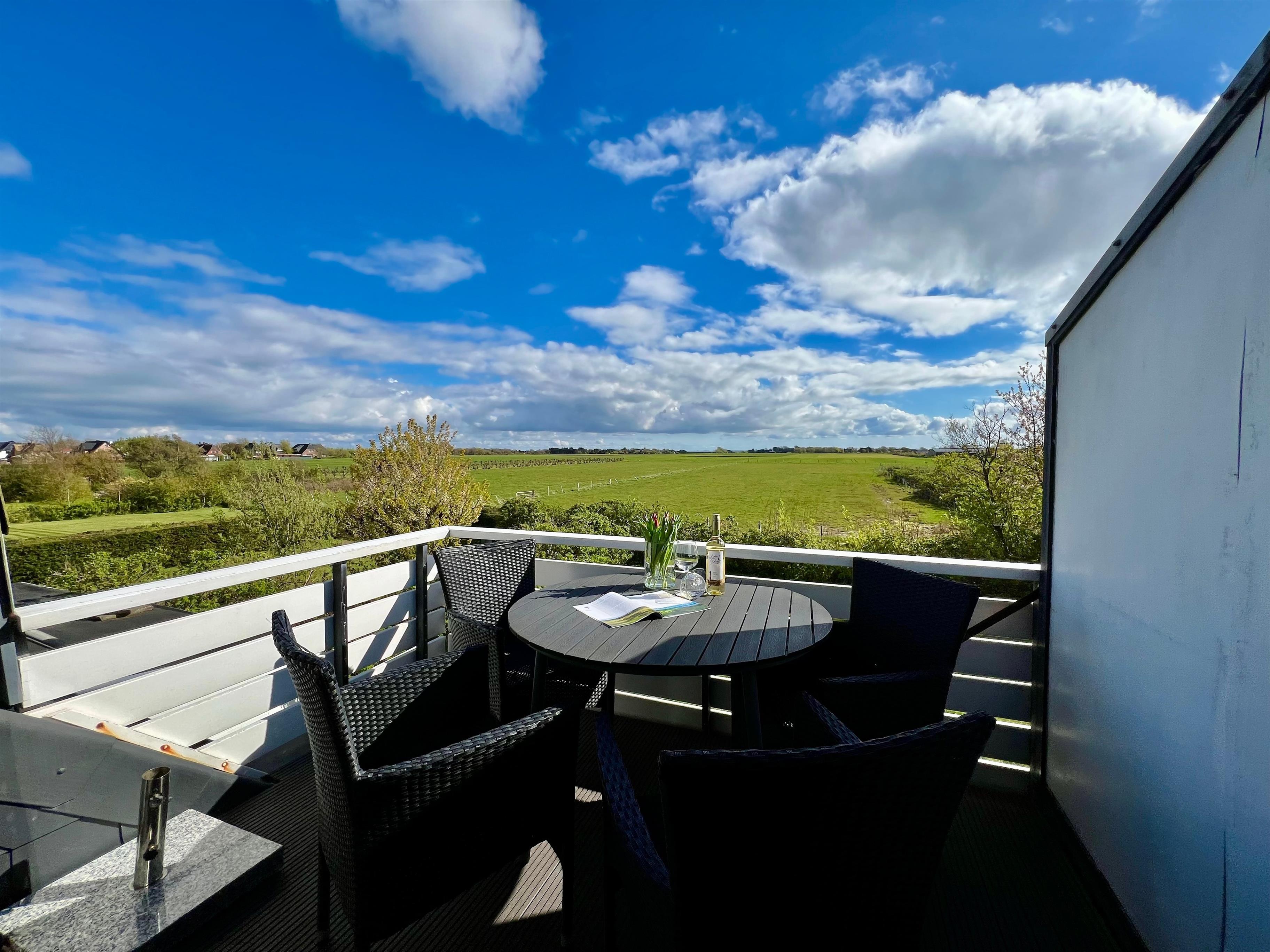 Es steht ihnen 1 Balkon zur Verfügung mit Platz für 4 Personen mit traumhaften Blick auf die Morsumer Wiesen.