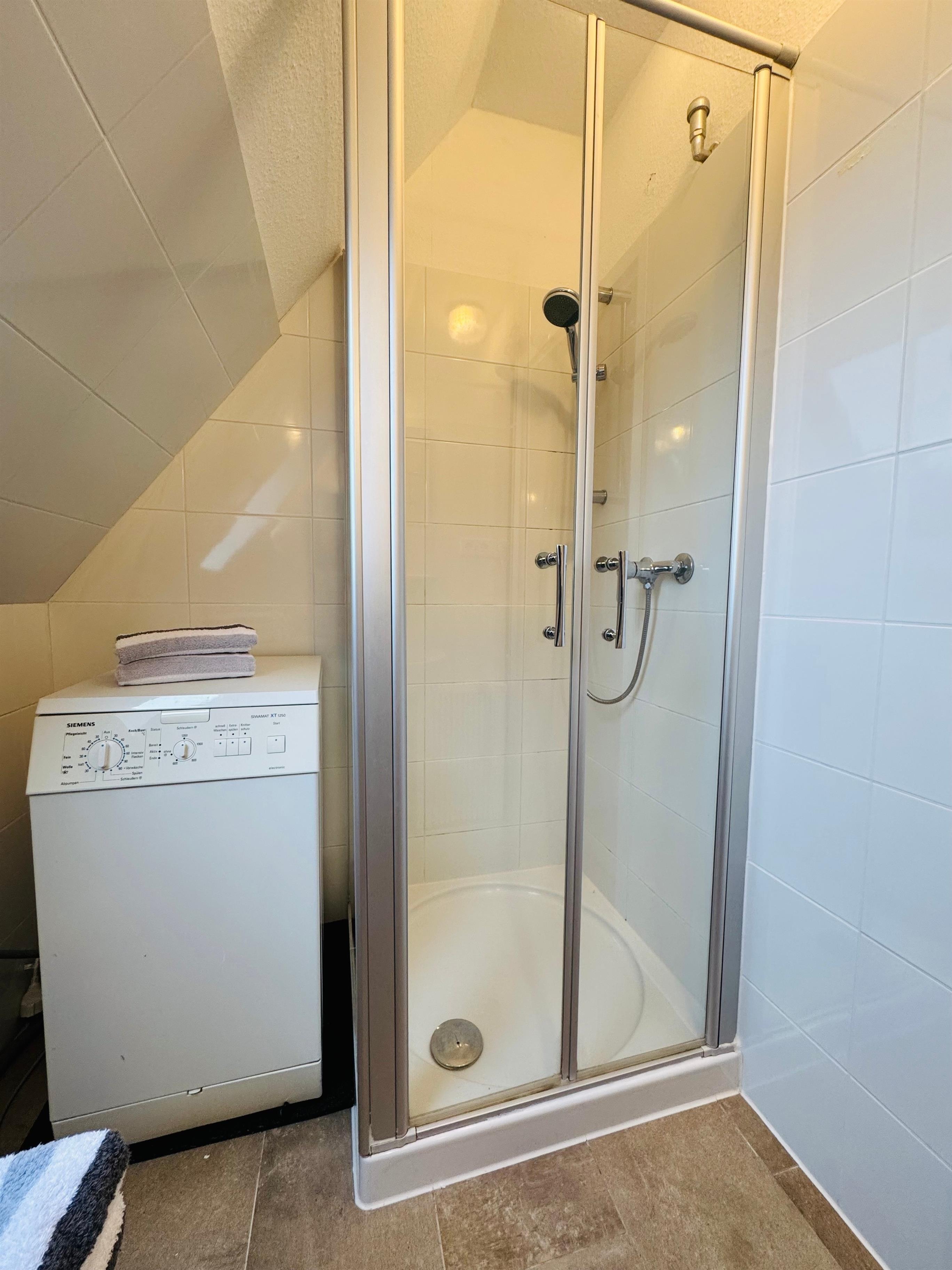 Für Ihr Wohlbefinden und Ihre persönliche Hygiene steht Ihnen ein Duschbad zur Verfügung. Und um auch im Urlaub keine Wäscheprobleme zu haben, ist eine Waschmaschine in der Ferienwohnung integriert, was Ihnen zusätzliche Flexibilität bietet.