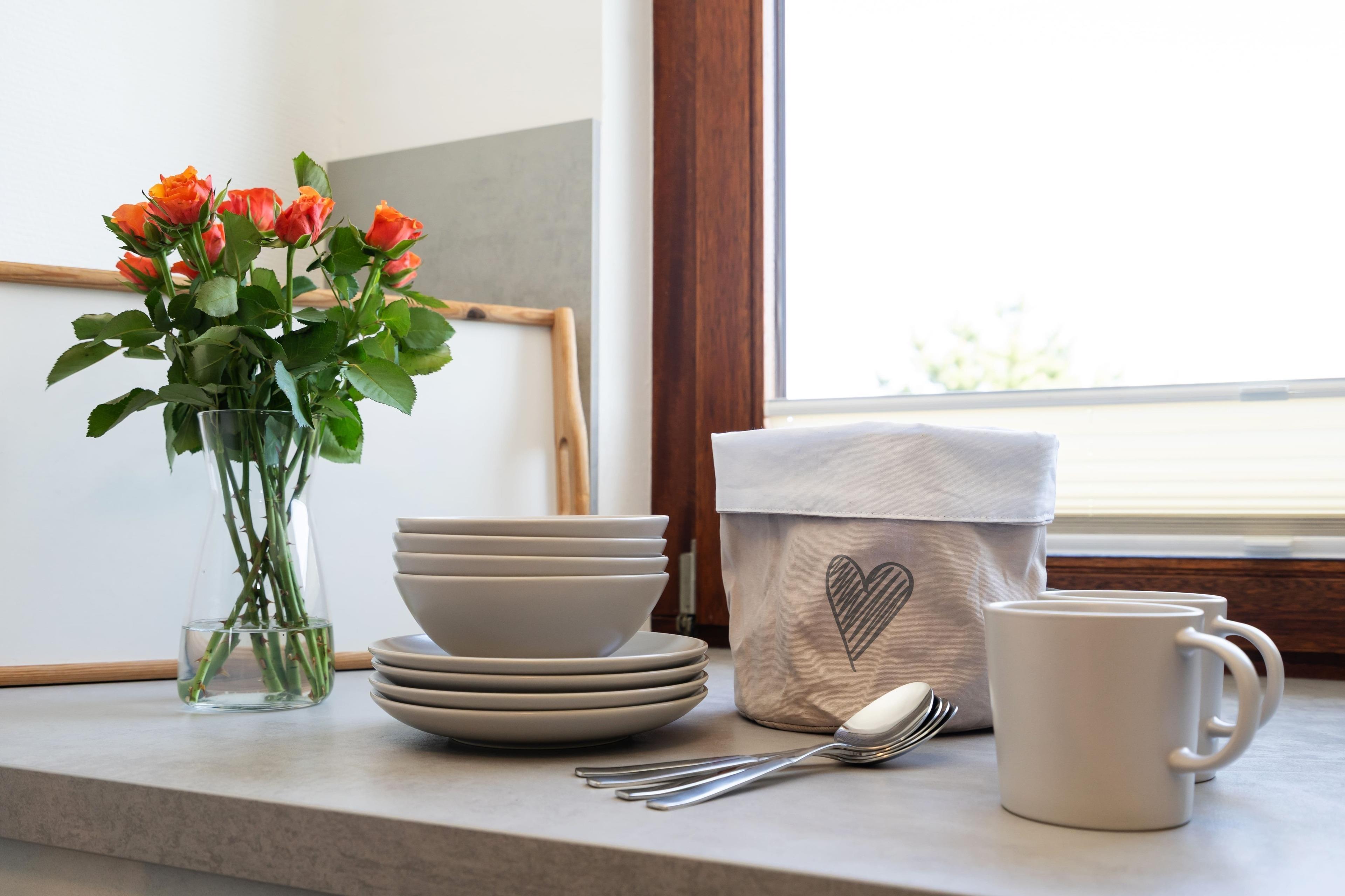 Das Wohnzimmer lädt mit einer gemütlichen Couchecke zum Verweilen ein und bietet gleichzeitig den Zugang zur großzügigen Dachterrasse. Hier erwartet Sie ein fantastischer Blick, ideal zum Entspannen und Sonne tanken. Die Essecke eignet sich hervorragend für gesellige Zusammenkünfte, während die Küche Ihnen die Möglichkeit bietet, köstliche Mahlzeiten zuzubereiten oder ein herzhaftes Frühstück im Freien zu genießen.