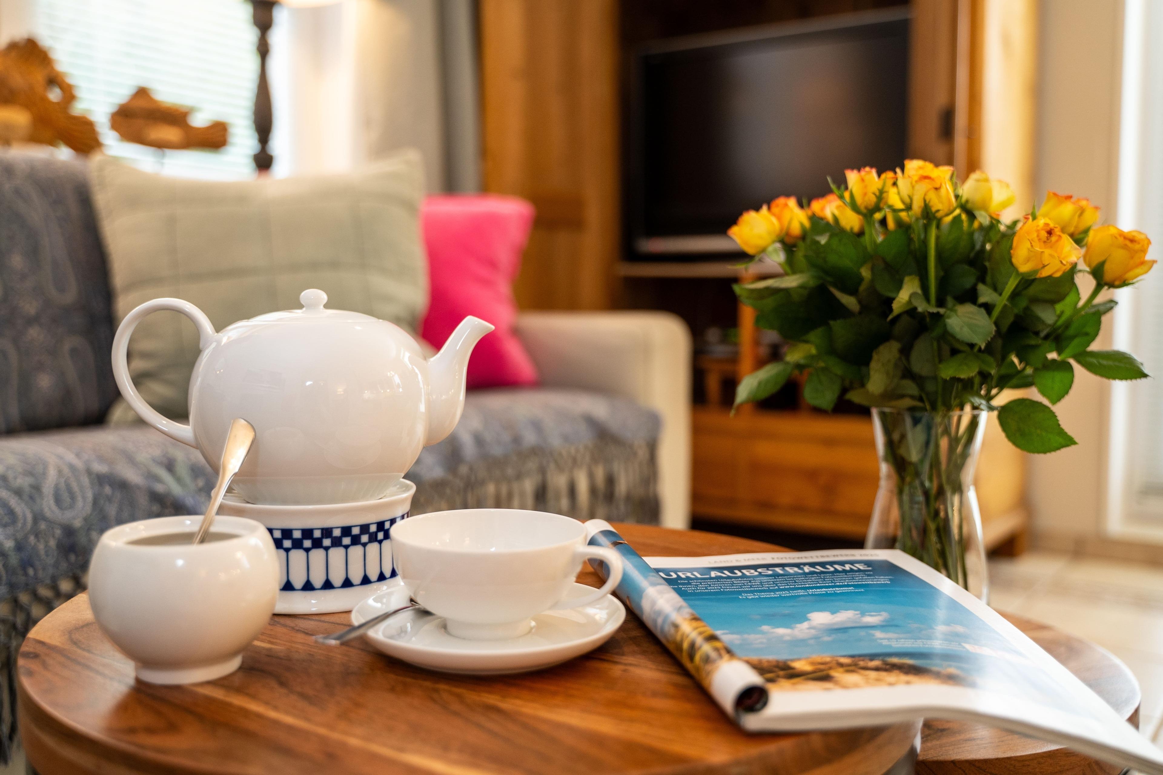 Im Außenbereich stehen Ihnen ein eigener Strandkorb und bequeme Gartenmöbel zur Verfügung. Ob ein ausgiebiges Frühstück an der frischen Nordseeluft oder ein entspanntes Sonnenbad – hier können Sie den Tag in aller Ruhe genießen.