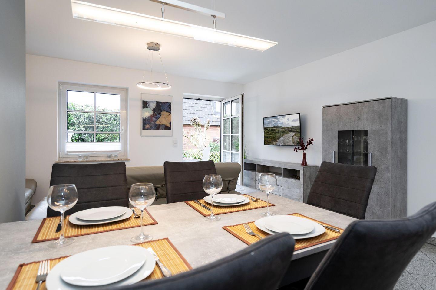 Moderne Erdgeschosswohnung in Sylt-Ost mit Garten, Terrasse, WLAN und kostenlosem Strandkorb für Ihren erholsamen Urlaub.