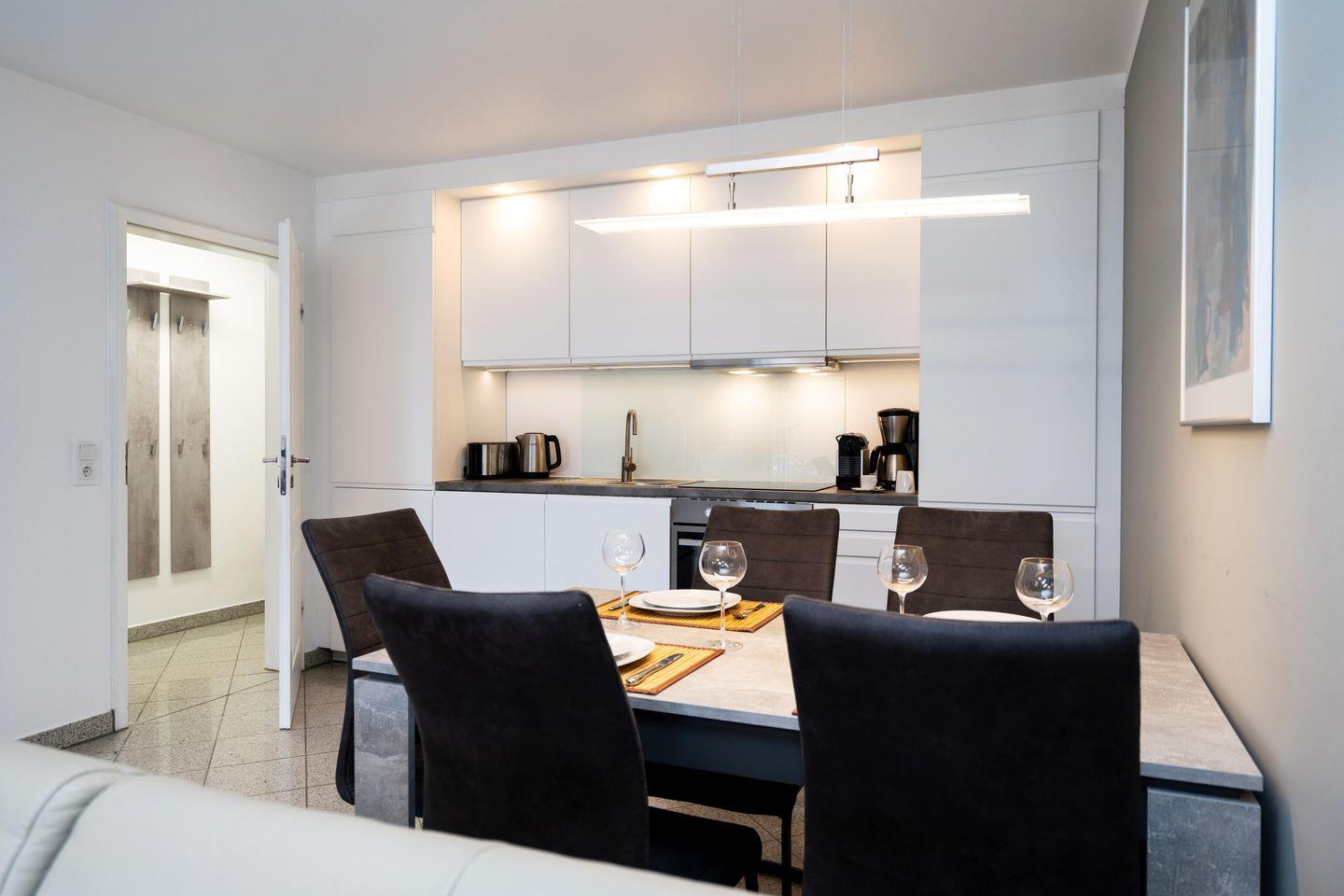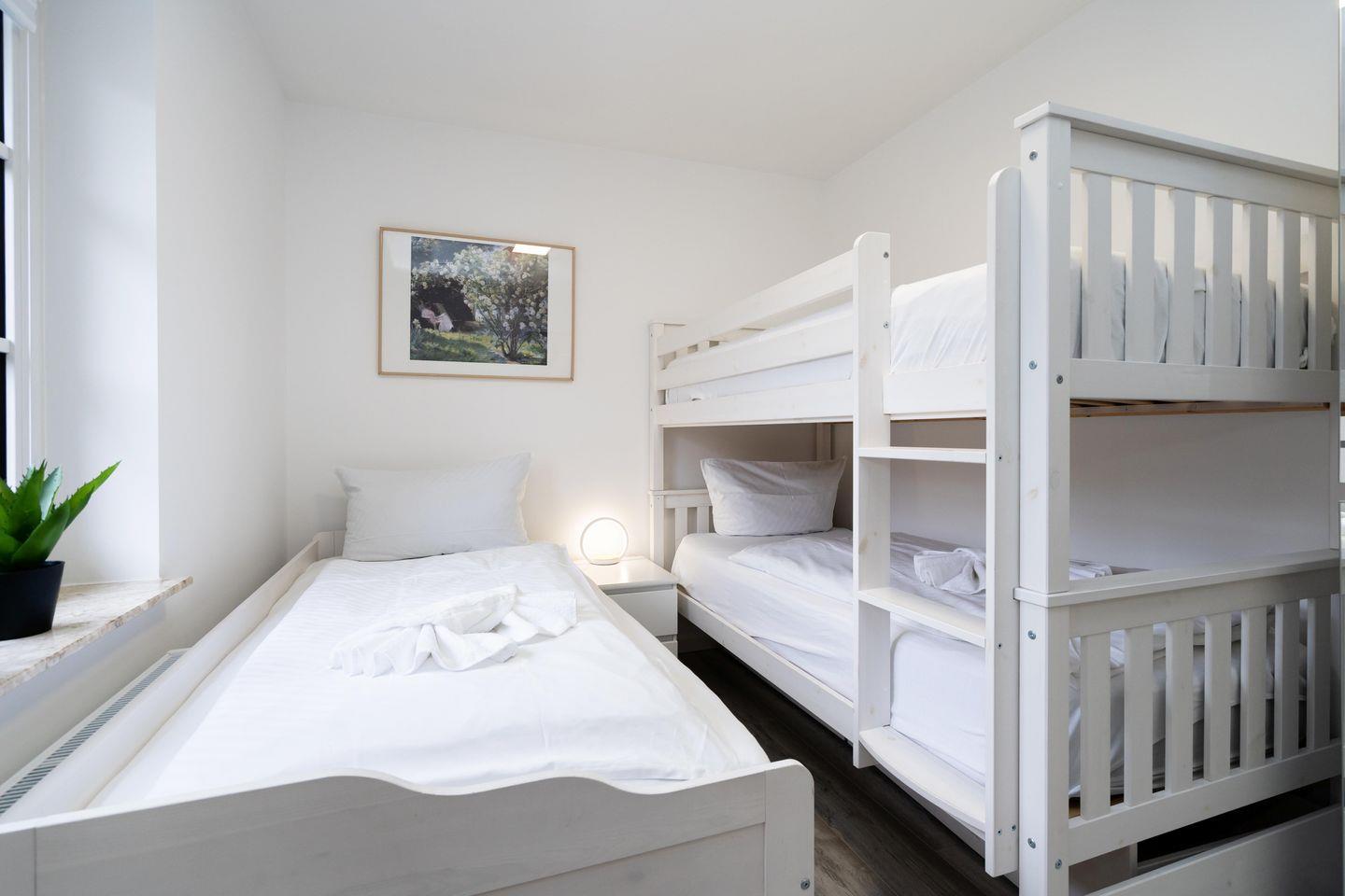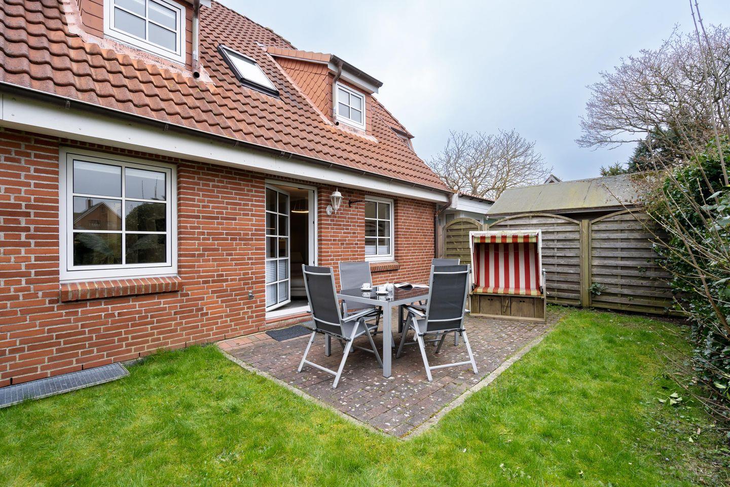 Diese moderne ca. 65 m² große Erdgeschosswohnung für bis zu 4 Personen bietet Ihnen ein gemütliches Wohn-/Esszimmer zur Entspannung mit Smart-TV und zwei Sofas. Die offene, voll ausgestattete Küche verfügt über einen Geschirrspüler, einen Backofen und eine Nespressomaschine. Nebenan befindet sich ein Doppelschlafzimmer mit einem Doppelbett sowie ein Duschbad mit Regendusche. Das zweite Schlafzimmer ist mit einem Einzelbett und einem Etagenbett für 2 Kinder bzw. 1 Erwachsenen und ein Kind ausgestattet. Beide Schlafräume verfügen über verdunkelbare Plissees. Genießen Sie die gemütliche Westterrasse samt Gartenmöbeln und Strandkorb (in der Saison). Die Ferienwohnung verfügt über kostenloses WLAN und einen zugehörigen PKW-Stellplatz. 1 Haustier ist erlaubt.