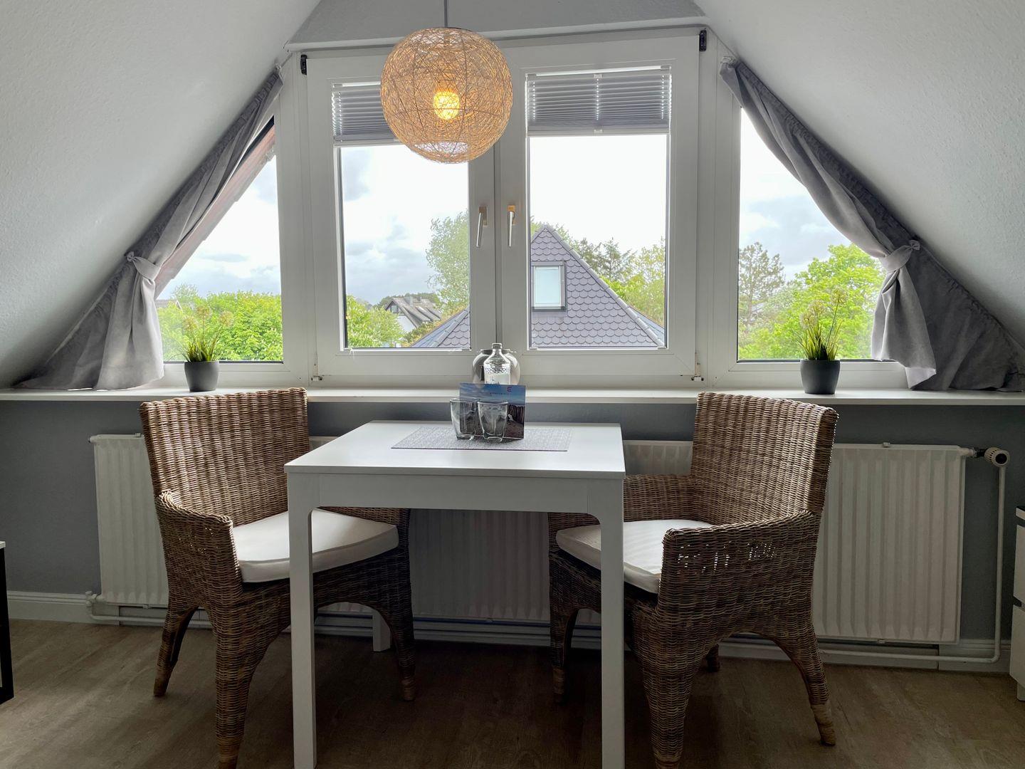 Unser kleines Appartement befindet sich im ersten Stock unserer Doppelhaushälfte in einer sehr ruhig gelegenen Ringstrasse mit geringem Verkehrsaufkommen. Unsere kleine Siedlung grenzt unmittelbar an das Tinnumer Naturschutzgebiet "Salzwiesen" und ist somit ideal für Spaziergänger, Jogger und Radfahrer. Einem Spaziergang in den umliegenden Feld- und Wanderwegen, sowie zur Tinnum Burg (0,5 km) oder an den Strand (1,2 km) sollte also nichts im Wege stehen. Aber auch die Friedrichstrasse in der Innenstadt (2,5 km) ist in kurzer Zeit zu erreichen. Für weitere Fragen, steht Ihnen sehr gerne die Vermietung "Appartements Eberhardt" zur Verfügung.