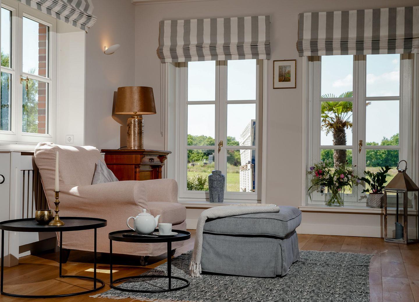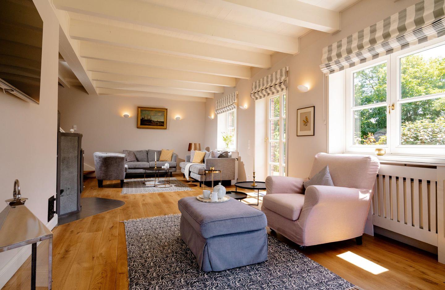Ankommen, wohlfühlen und genießen - ob vor dem Kamin, in der gemütlichen Leseecke oder auf der großen Südwest-Terrasse mit weitem Blick über die Morsumer Wiesen - Sie werden sich hier sofort zuhause fühlen...!