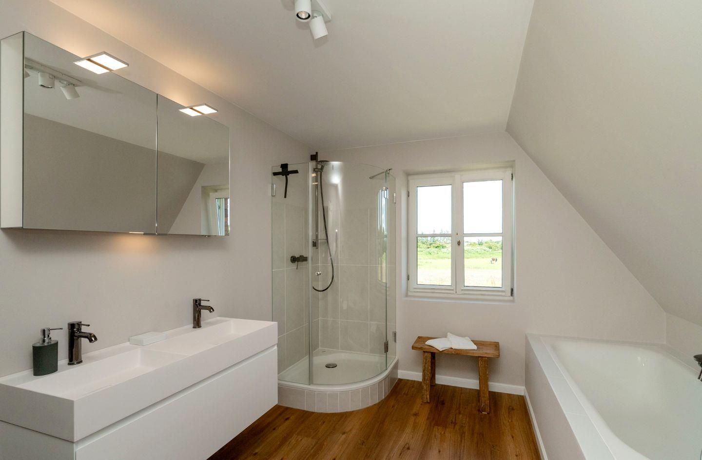 Großzügiges Endhausteil unter Reet im Herzen von Morsum. Etwas versteckt, in einer ruhigen Anliegerstraße gelegen, finden Sie dieses besondere Feriendomizil umgeben von Wiesen. Die klassische Raumaufteilung über zwei Ebenen verleiht dem Haus einen besonderen Charakter: über den großen Flur erreichen Sie den Wohnbereich mit offener Küche. Die drei Doppelschlafzimmer befinden sich im Obergeschoß.