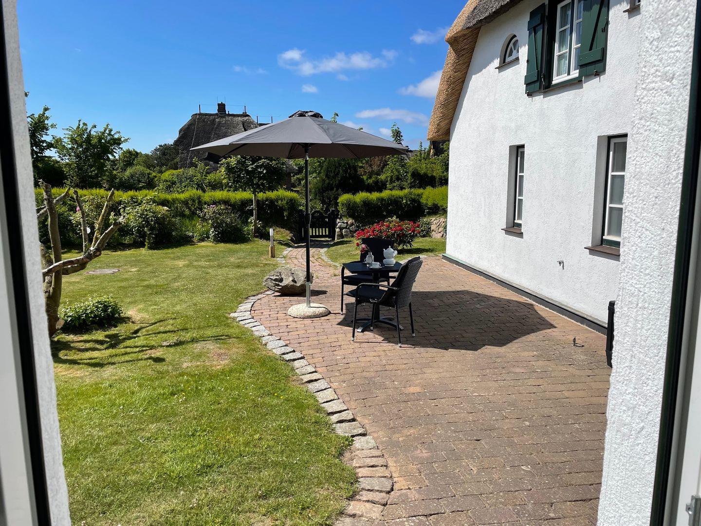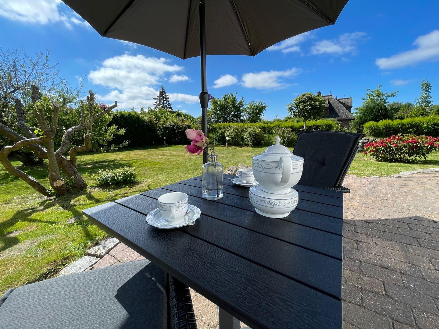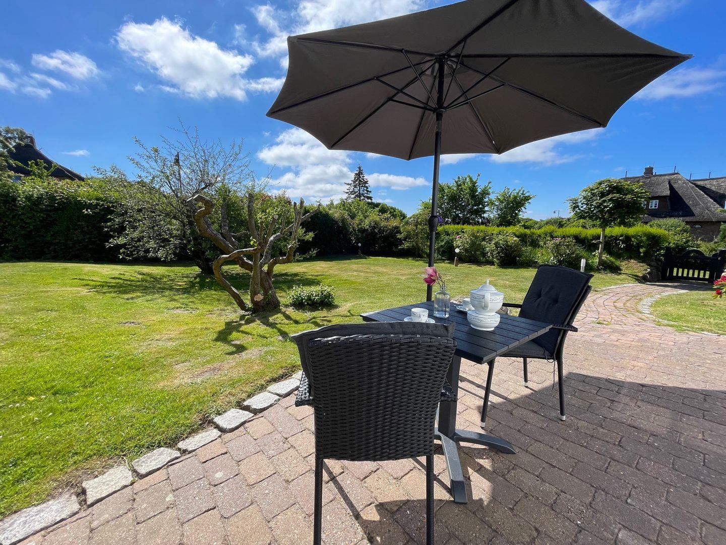 Rund um das Landhaus Tons erstreckt sich ein weitläufiger Garten, umgeben von einer schützenden Hecke. Hier können Sie die frische Inselluft in aller Ruhe genießen, die Seele baumeln lassen oder auf der eigenen möblierten Terrasse gemütliche Stunden verbringen. Ein Privatparkplatz gehört selbstverständlich ebenfalls zu Ihrem Komfort.