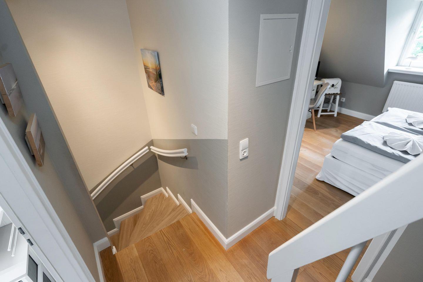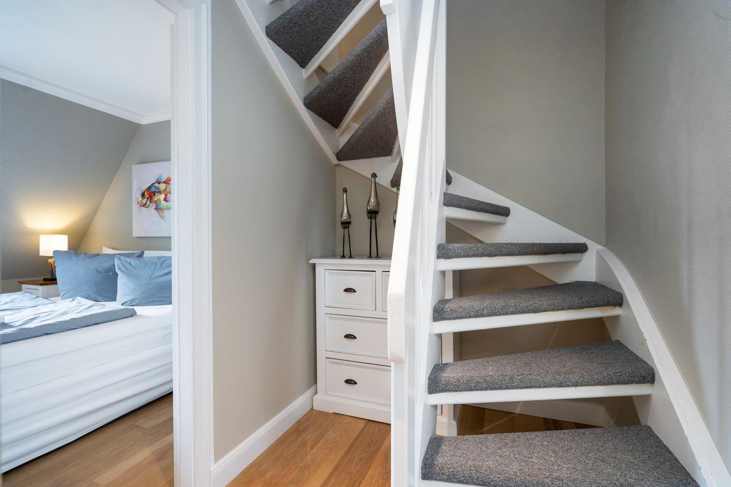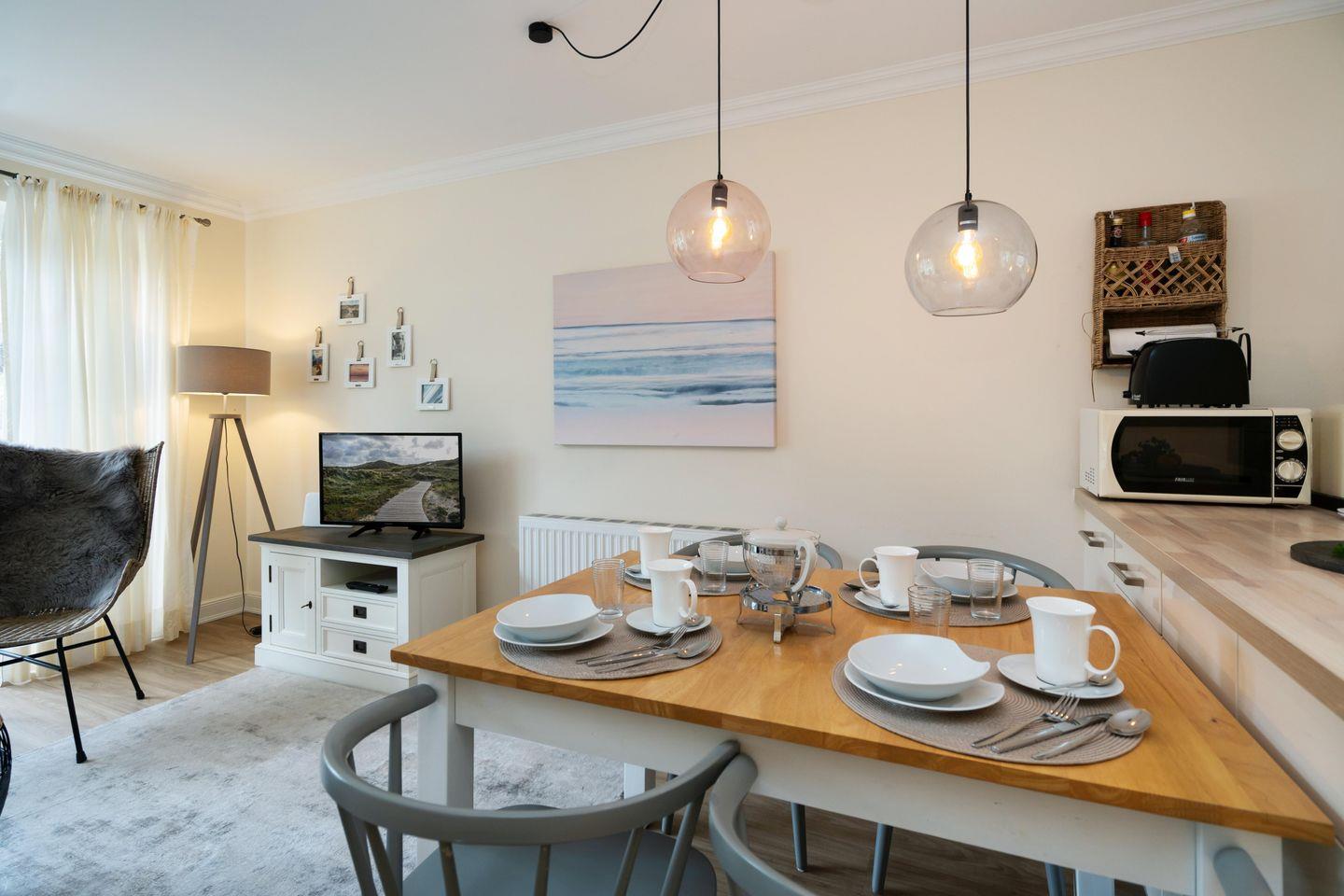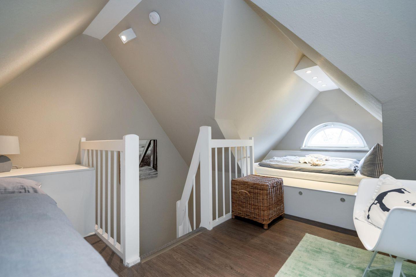 Dieses schöne ca. 70 m² große Ferienhaus unter Reet für bis zu fünf Personen verläuft über drei Ebenen und befindet sich in wunderschöner Lage im Süden Keitums. Das Erdgeschoss bietet Ihnen einen stilvoll eingerichteten Wohn- und Essbereich, der durch seine gemütliche Atmosphäre zur Entspannung einlädt. Die moderne, offene Küche samt Geschirrspüler, Mikrowelle und Gefrierfach ist voll ausgestattet. Im 1. Obergeschoss erwartet Sie ein helles Doppelschlafzimmer sowie ein Duschbad mit Waschmaschine. Im Dachgeschoss befindet sich ein weiteres Schlafzimmer mit einem Doppel- sowie einem Einzelbett. Nutzen Sie gerne die sonnige Westterrasse mit angrenzendem Garten samt Gartenmöbeln und Strandkorb (in der Saison). Kostenloses WLAN, zwei zugehörige PKW-Stellplätze und eine Waschmaschine stehen Ihnen zur Verfügung. Ein Haustier ist erlaubt.